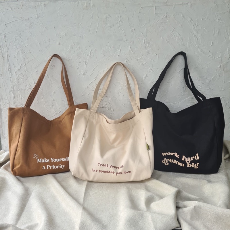 FREE ONGKIR TAS Balo Canvas Tote Bag Resleting Kantong Sablon - Cabiciks