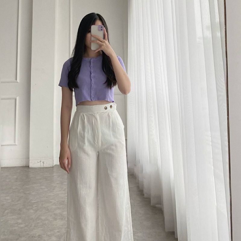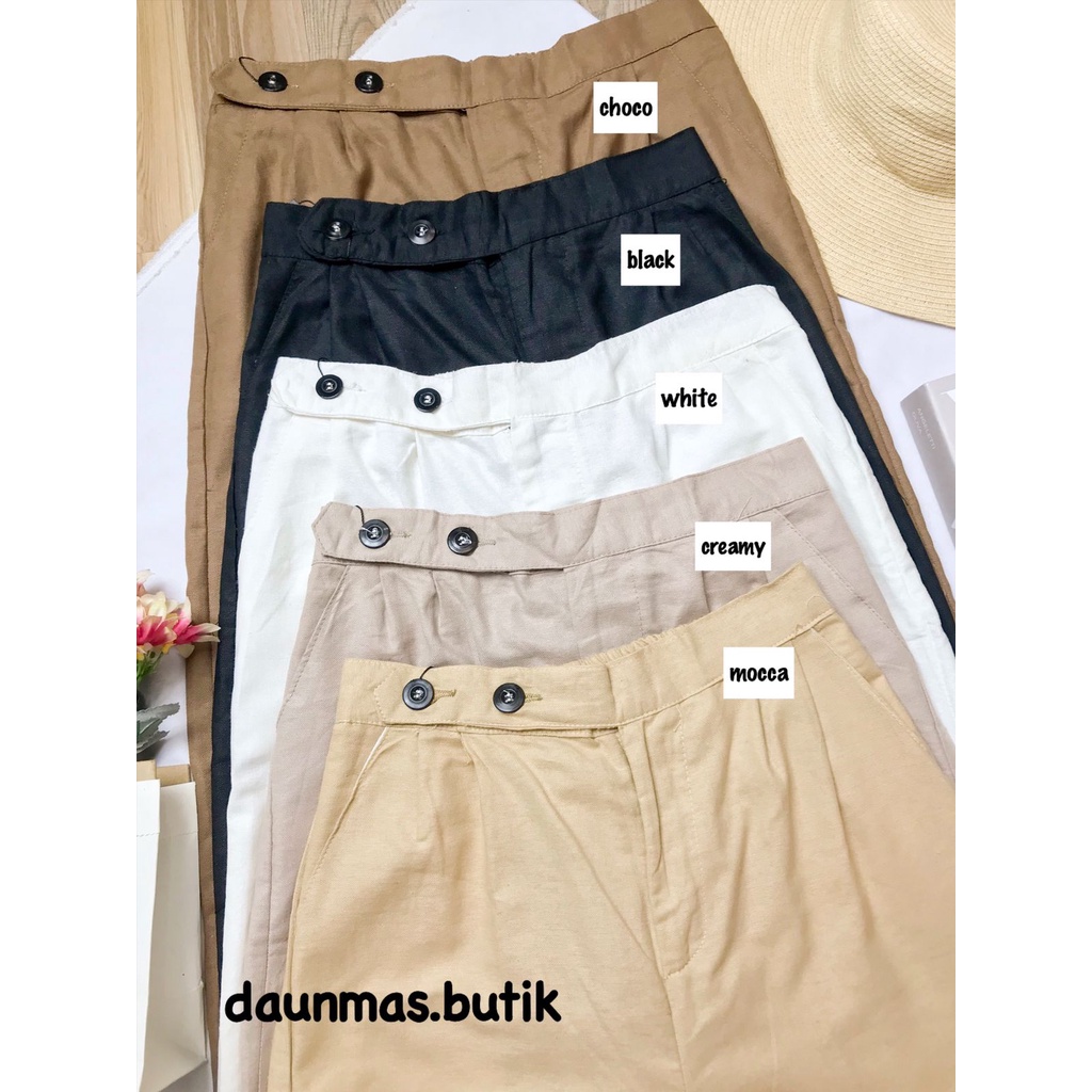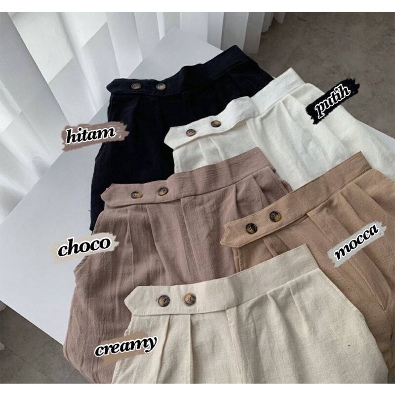 HIGHWAIST KULOT LINEN DAILY CELANA SIDE BUTTON KOREAN STYLE