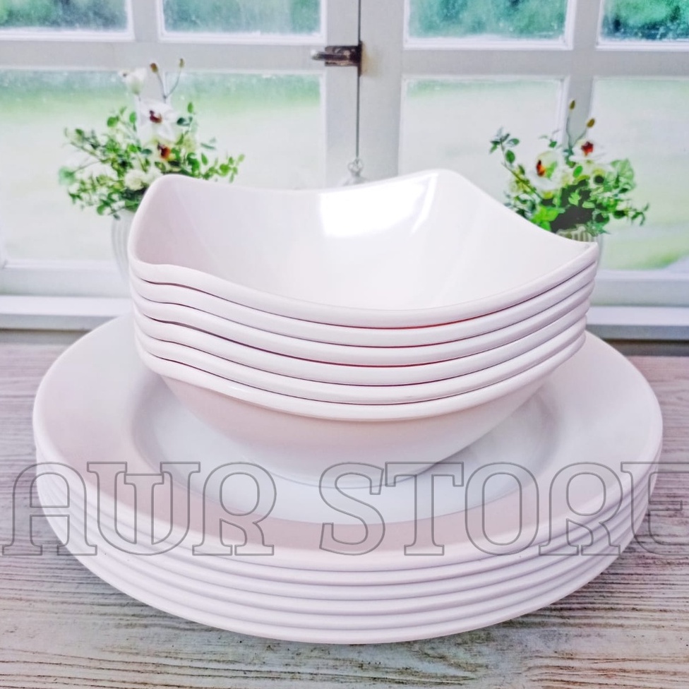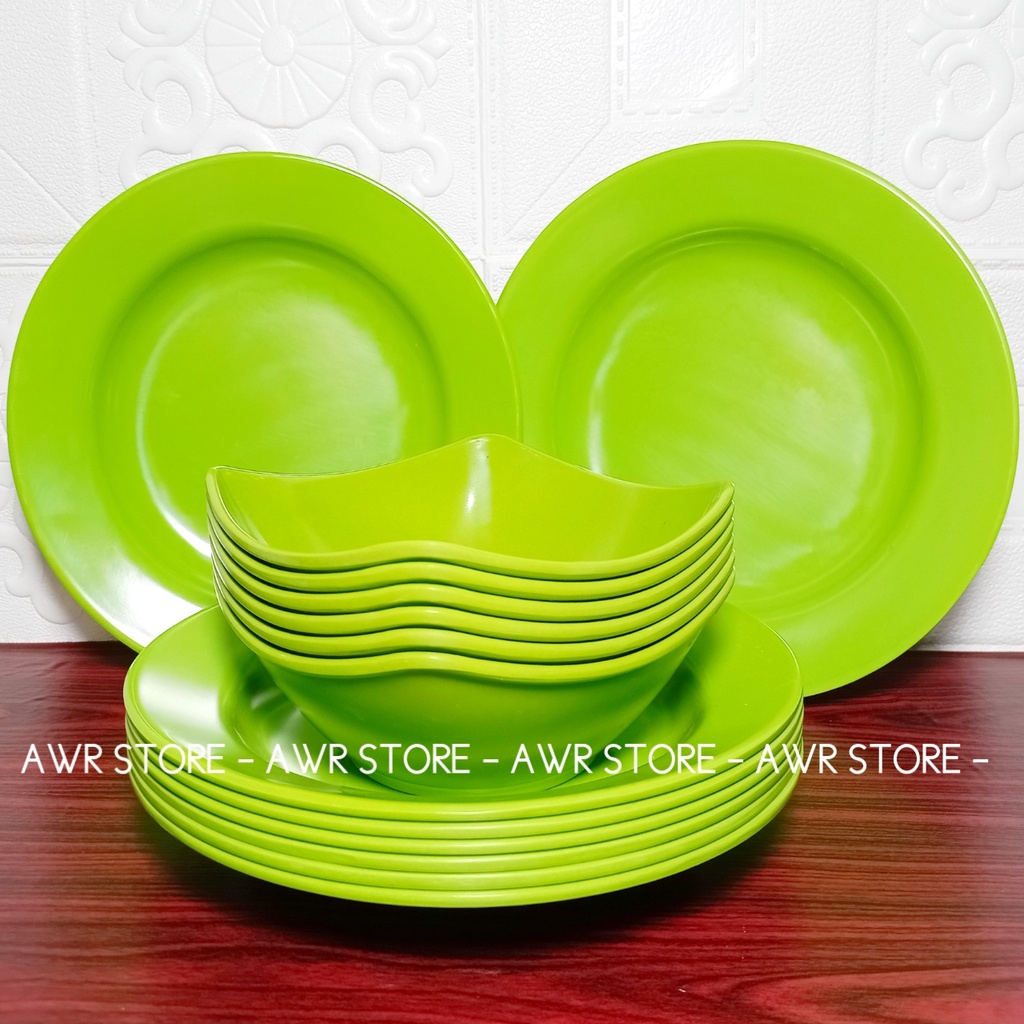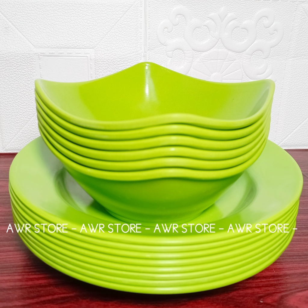 FREE ONGKIR 6PCS PERALATAN MAKAN BAHAN MELAMIN DIAMETER PIRING 9INC 22CM DIAMETER MANGKUK 7INC