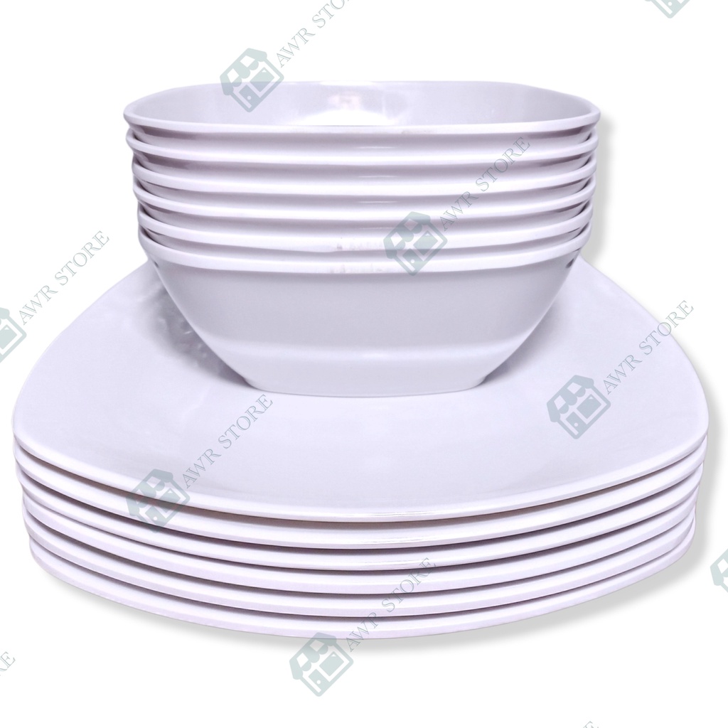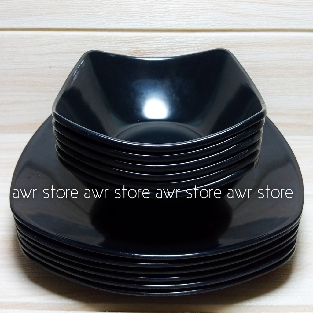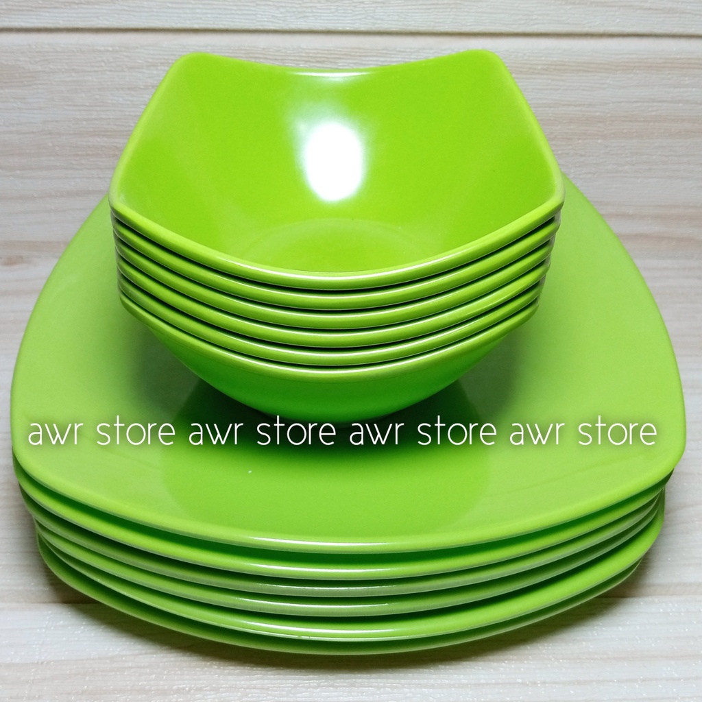 FREE ONGKIR 6PCS PERALATAN MAKAN BAHAN MELAMIN DIAMETER PIRING KOTAK 10INC DIAMETER MANGKUK 7INC