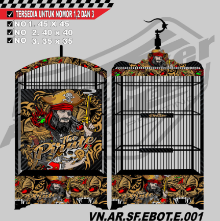 Stiker Decal Kandang Ebod Kotak / Dekal Sangkar Burung Kotak Model Ebod, BnR, Kosan DISAIN BAJAK LAUT (E)