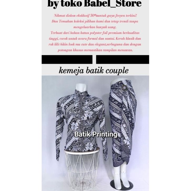 Rok Lilit Batik Pasangan Baju Couple Kain Premium Satu Set Lengan Panjang Bahan Polyster Foil Kualitas Premium