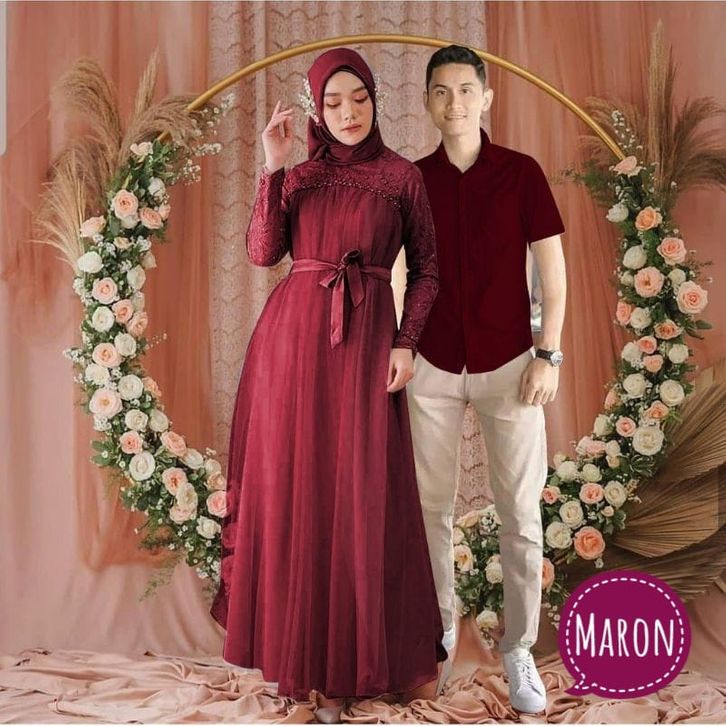 Couple Baju Muslim Gamis Wanita Brukat Lapis Furing Kemeja Pria Moscrepe L XL XXL Kualitas Premium