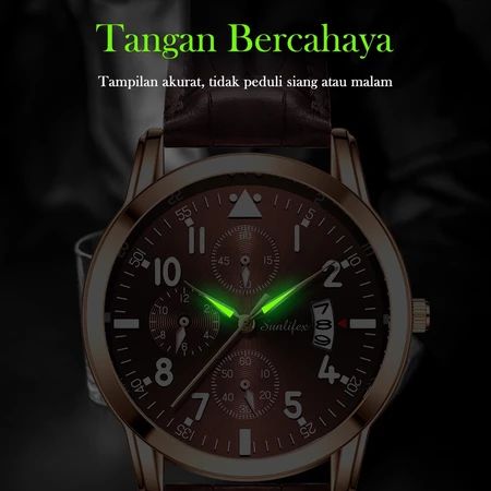 SUNLIFEX Jam Tangan Pria Original Anti Air Kuarsa Tali Kulit Model Kekinian Best Seller Termurah