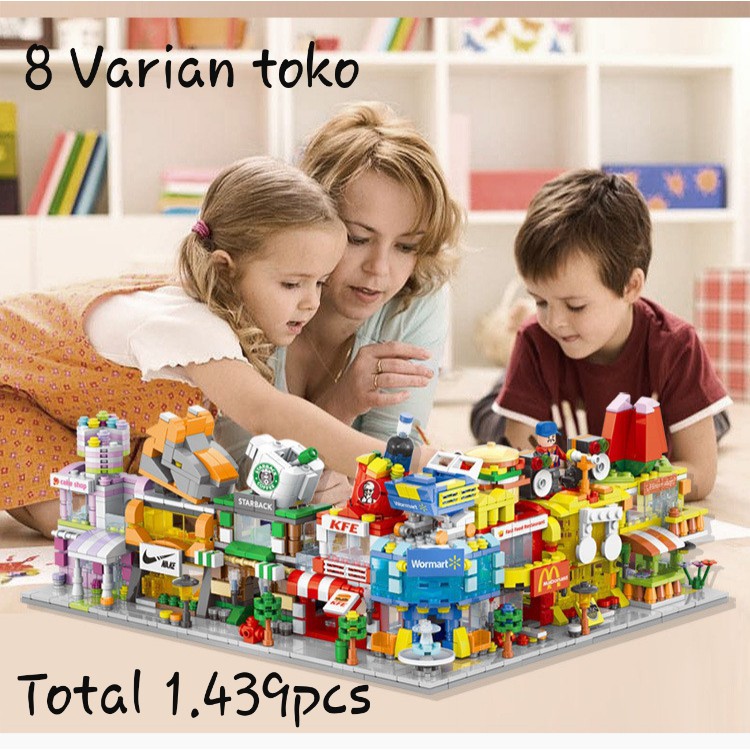 MAINAN ANAK BALOK SUSUN TOKO MODERN / BALOK SUSUN STREET VIEW 8 IN 1 (JUAL ECER)