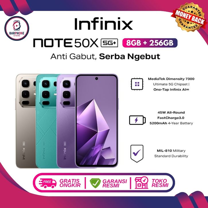 INFINIX NOTE 50X 5G+ 8/256GB UP TO 16GB EXTENDED RAM DIMENSITY 7300 ULTIMATE 6.67” HD+ 50MP OIS 5200 MAH NFC