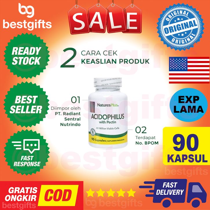 NATURE'S NATURES NATURE PLUS ACIDOPHILUS LACTOBACILLUS PENCERNAAN USUS ANTI PARASIT JAMUR 90 KAPSUL