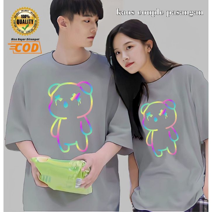 Kaos Distro Couple Pacar Bear Rainbown Pria Wanita Katun Combed 30s Pasangan Cowok Cewek Kekinian