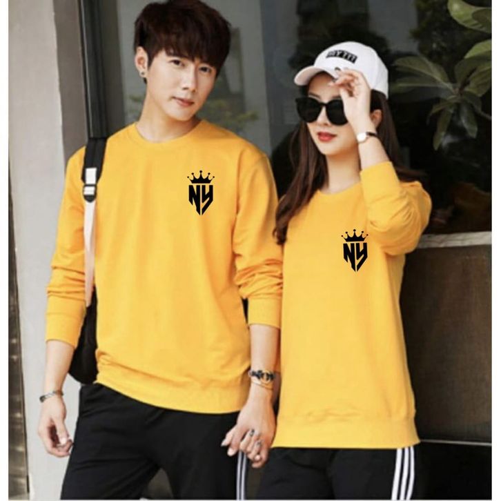 One Set Lengan Panjang Couple Isi 2 Alya Edisi Logo QueeNY Dan KingNY Baju Kaos Pasangan Berkualitas Premium
