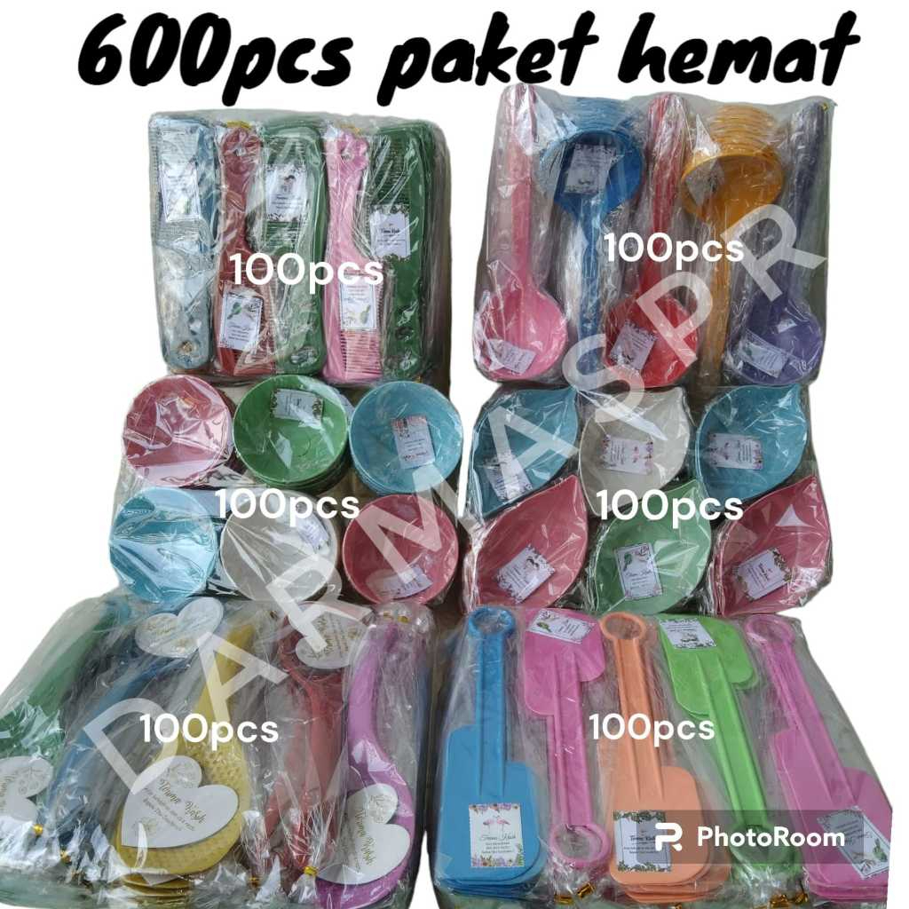 PAKET LENGKAP SUPER HEMAT SOUVENIR PERNIKAHAN CENTONG NASI, MANGKOK DAUN, SISIR MINI, SODET ISI 600 PCS