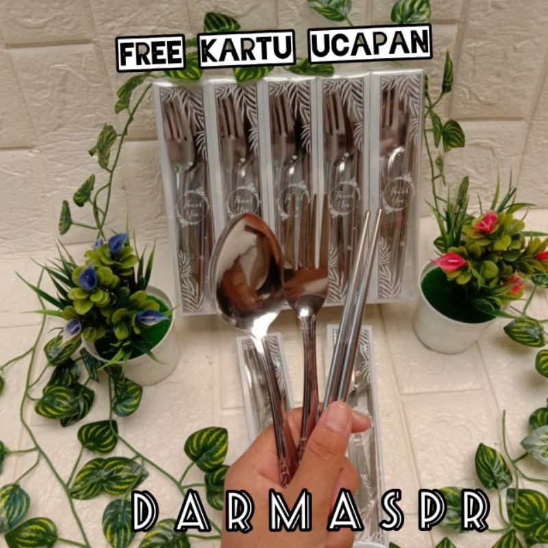 Souvenir 50 Pcs Sendok Garpu Makan PAKAI SUMPIT Kemasan Mika Motif Sovenir Pernikahan Murah Besar