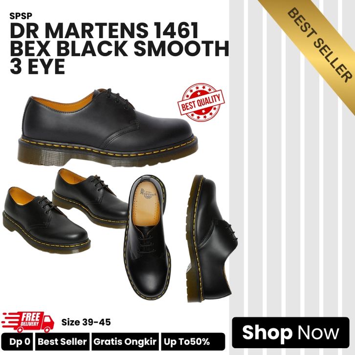 Dr Martens 1461 BEX Black Smooth 3 Eye Docmart