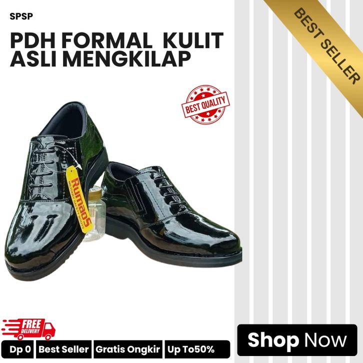 sepatu pantofel/PDH formal TNI POLRI SECURITY SATPAM kulit asli kilap