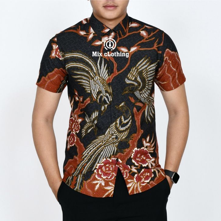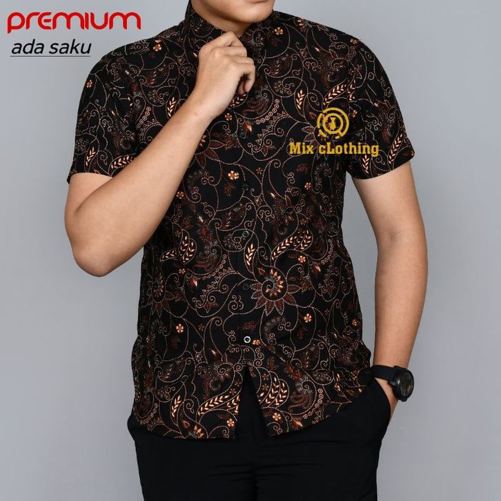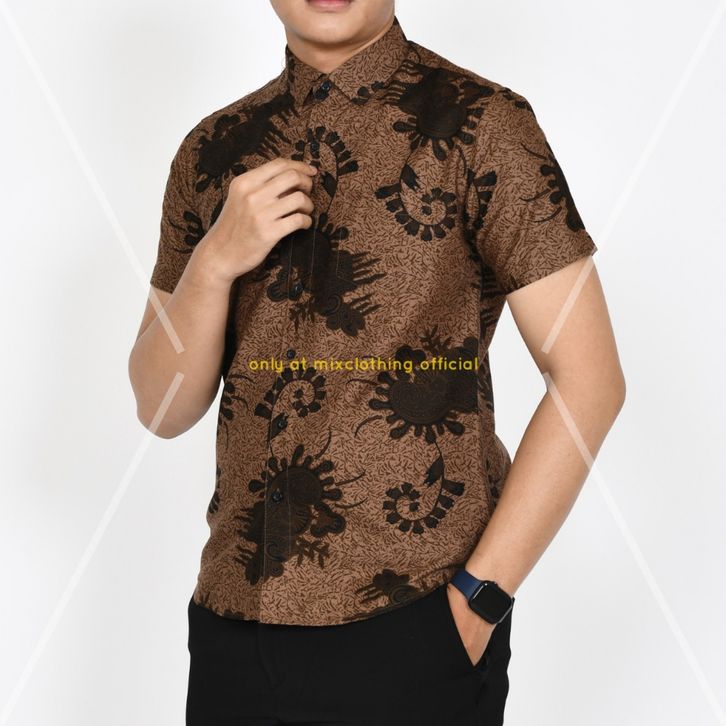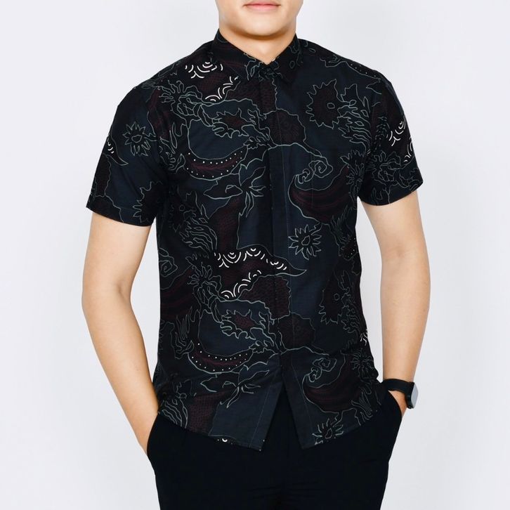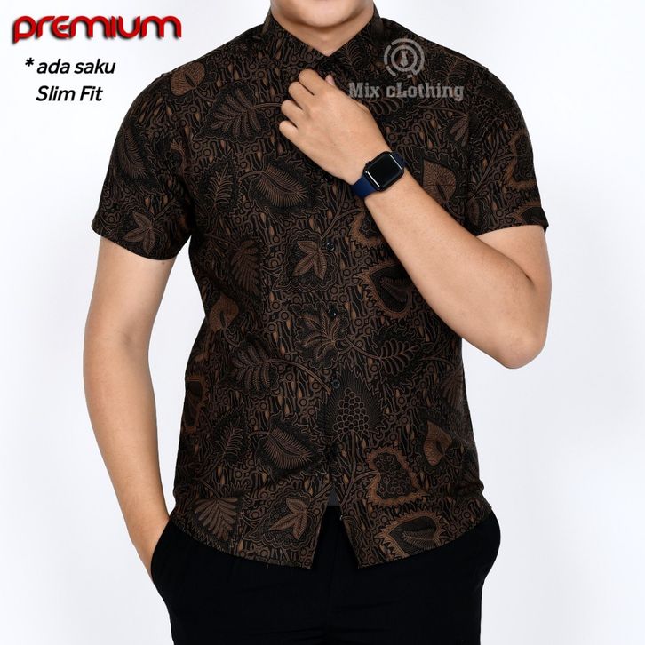 Baju Batik Stylish Pria Slimfit Kemeja Lengan Pendek Luigi Batani Modern Kantong Di Dada Kiri Depan Kualitas Premium