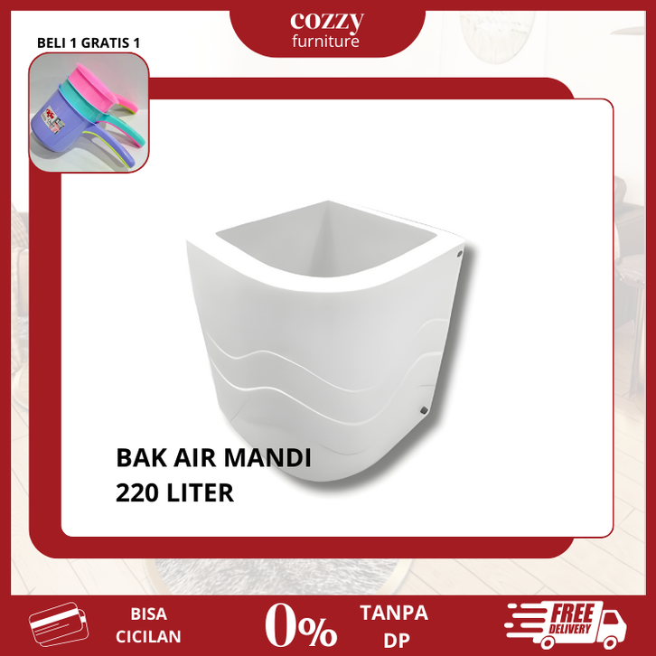 Bak Air Mandi Sudut Luxury Fiber Glass 220 Liter 220 Ltr White