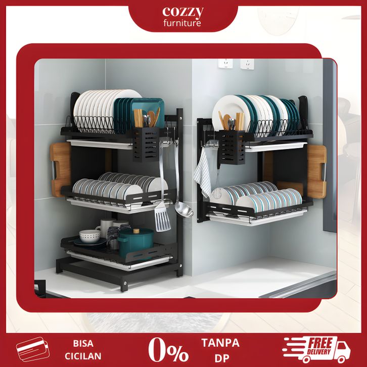 Rak Piring Stainles Steel Gantung Dinding Rak Piring Anti Karat Rak Penyimpanan Mangkuk