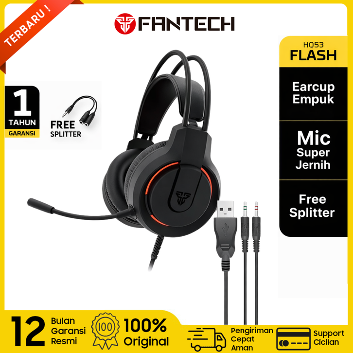 [Star] Headphone Bluetooth Kabel Gaming Fantech Flash HQ53 Headset Ori Mic Full Bass
