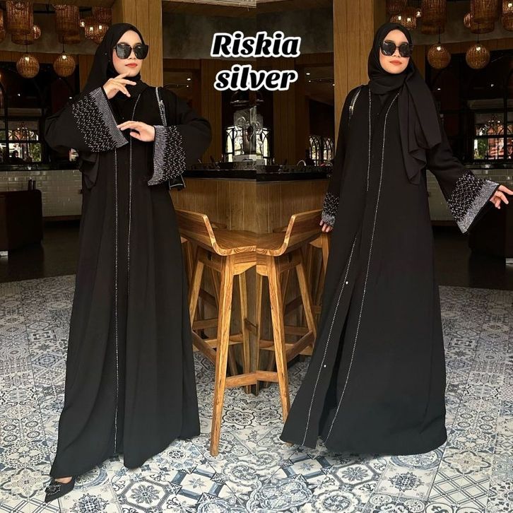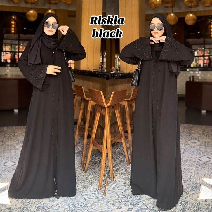 Abaya Terbaru Gamis Hitam Maxy Dress Fashion Muslim Busana Wanita Turkey Murah Dubai RISKIA
