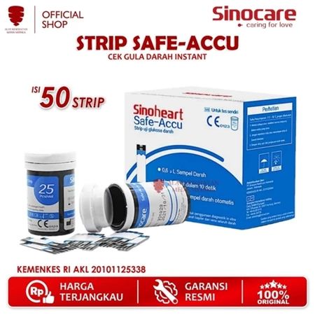 Alat Cek Gula Darah Strip Safe-Accu Isi 25 Test Uji Glucose Glukosa Refil Medis