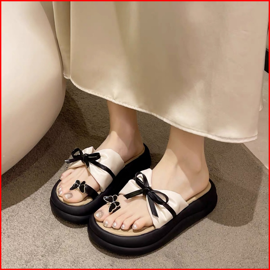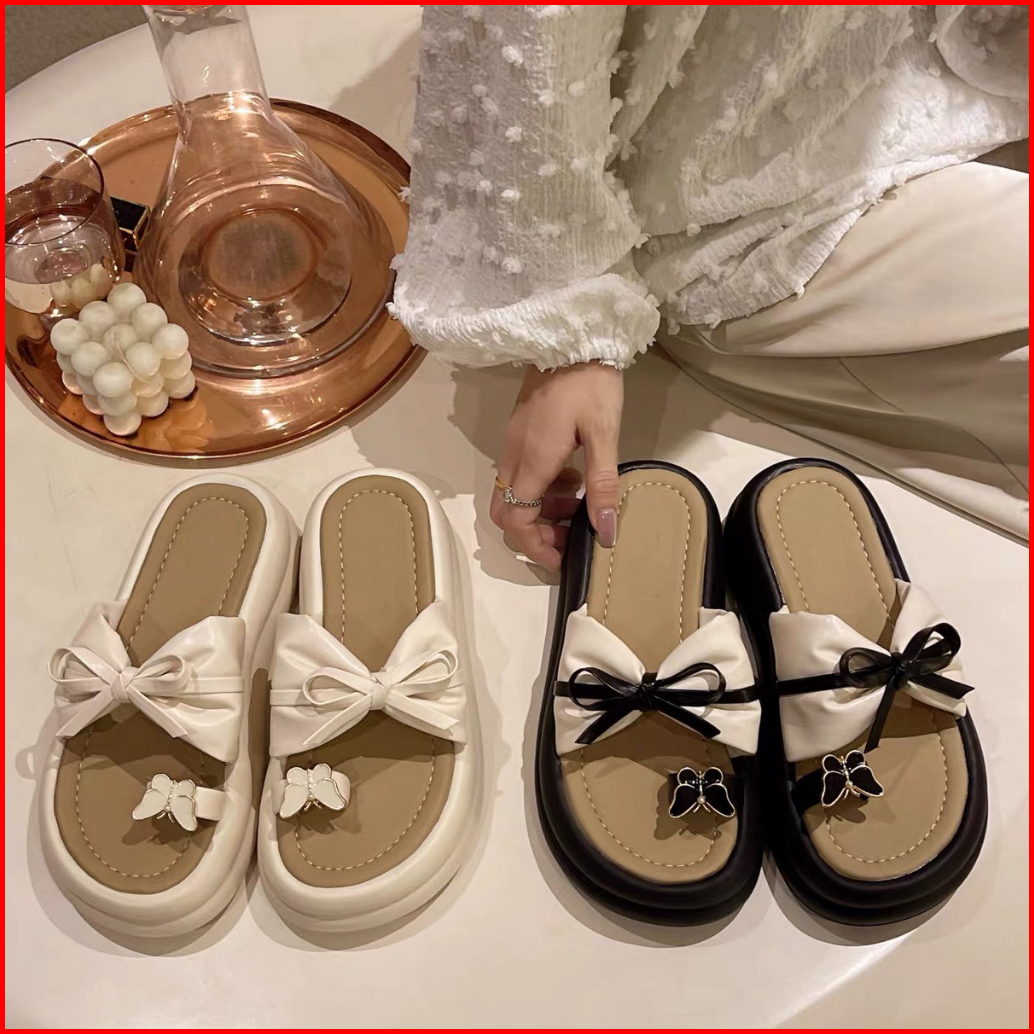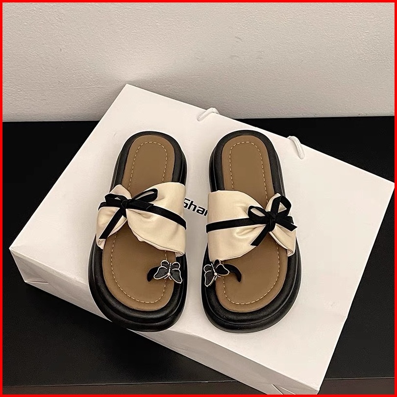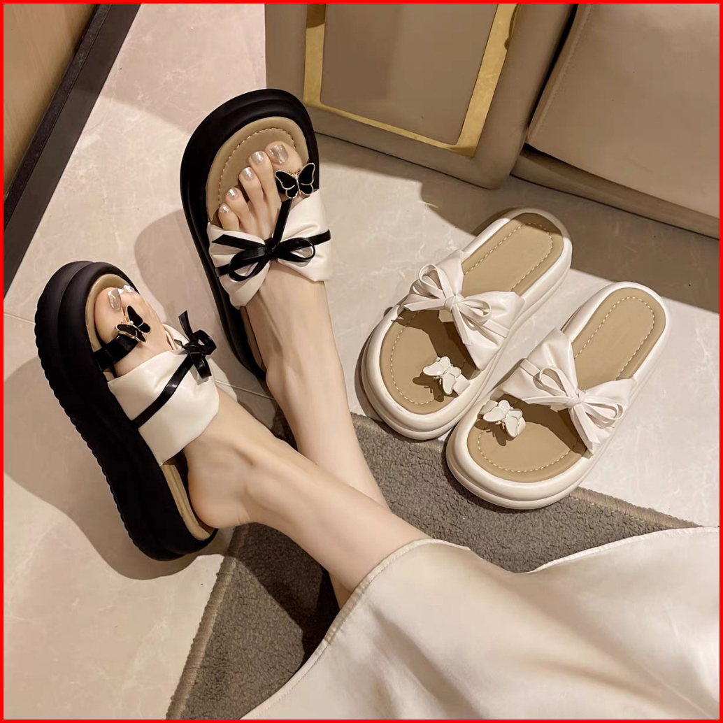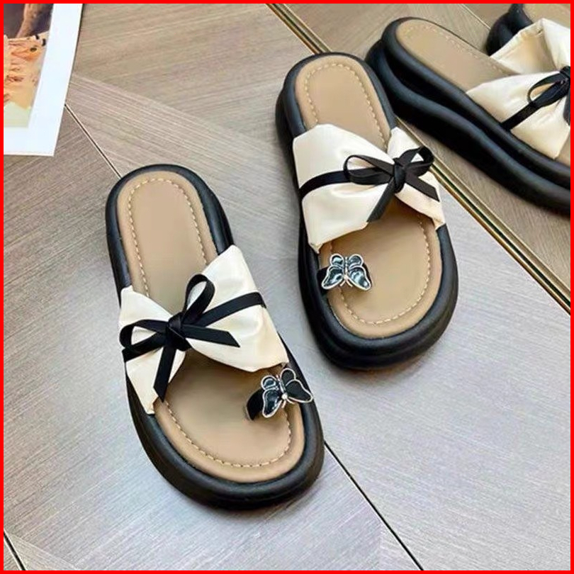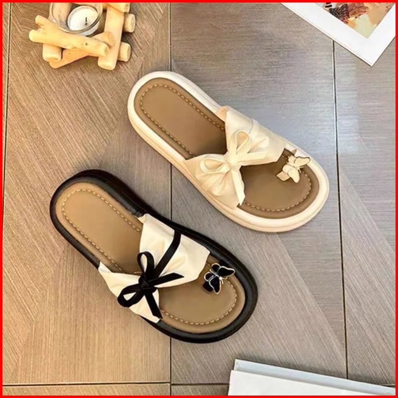 Promo Ready Femino Sandal Wanita Model Kupu-kupu Fashion Korea Sandal Wedges Kekinian Hitam Beige 4cm Needxuss- B55