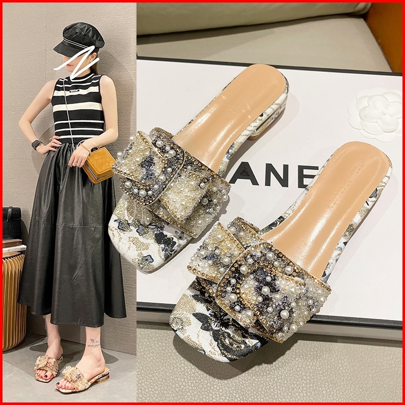 Sepatu Sandal Selop Flat Fashion Wanita Perempuan Cewek Cantik Harian Kekinian Simple Terbaru Import Gaya Korea Elegan K