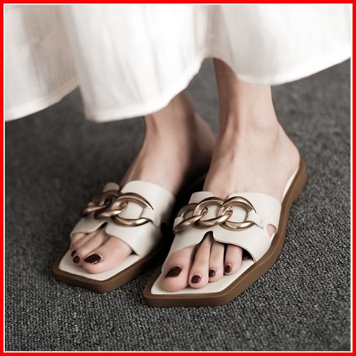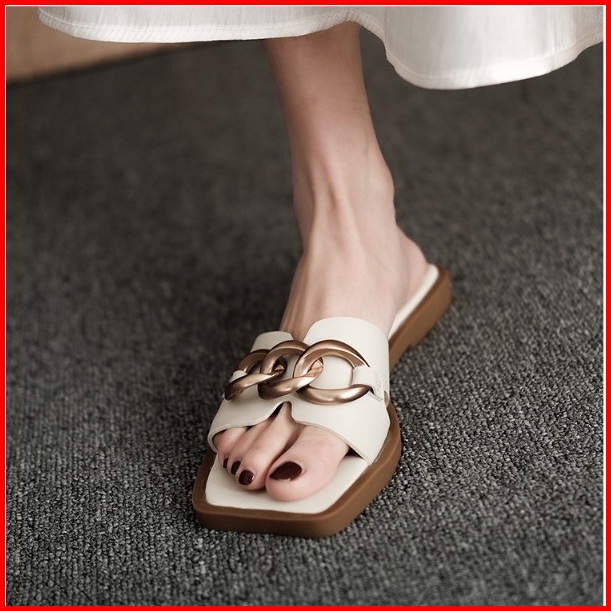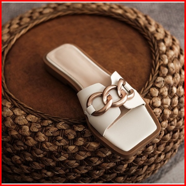 A 018 Sandal Santai Wanita Sandal Rantai Besar Jaminan Empuk Sandal Flat Import