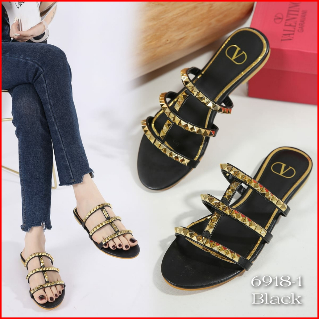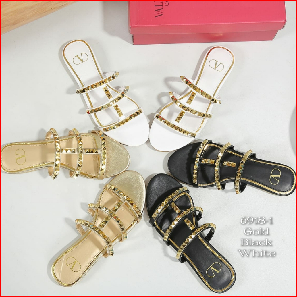 Sandal Flat Wanita Kulit Import Best Seller 6918-1