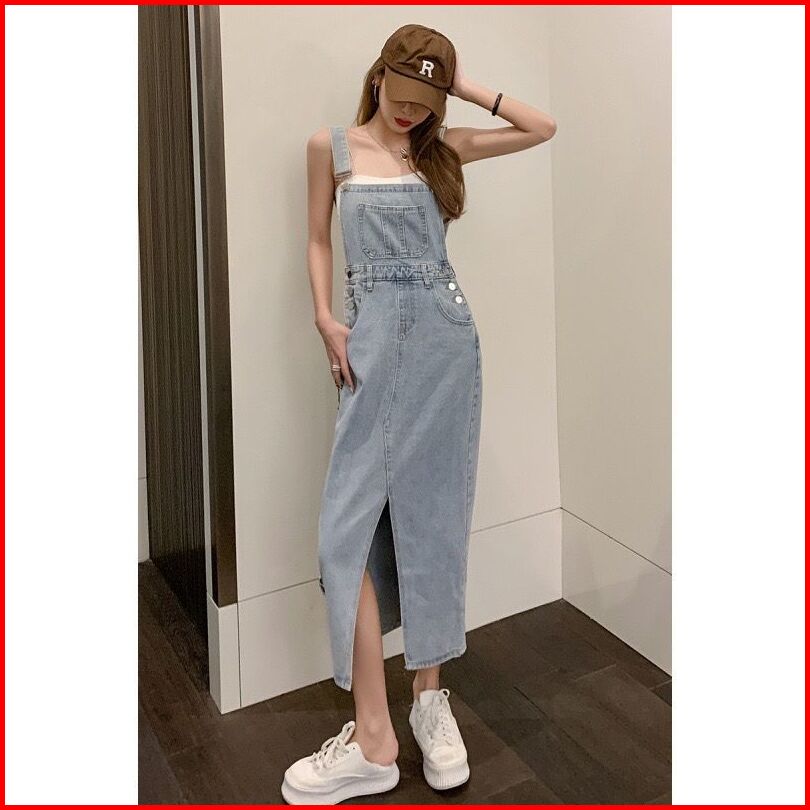 Jumpsuit Rok Jeans Wanita Overall Skirt Denim Rok Belahan Tengah W.p 8856-jp012