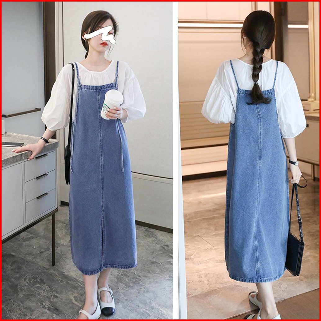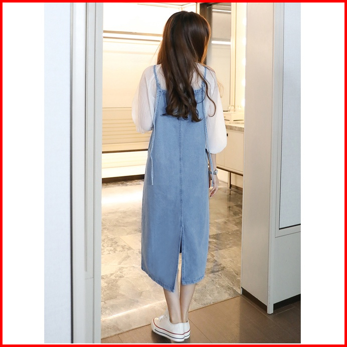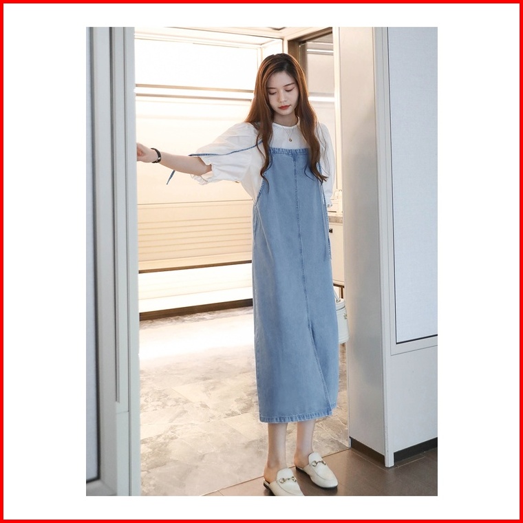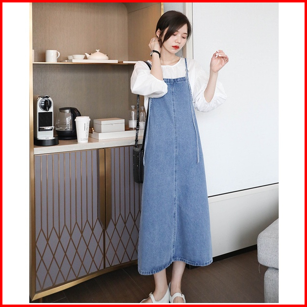 Overall Jeans Wanita Rok Jeans Panjang Maxi Dress Korean Style Long Dress Jumpsuit Fashion Wanita Jumbo Kekinian