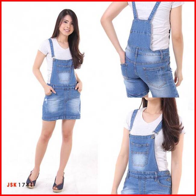 Overall Rok Celana Pendek Jeans Wanita Denim Jsk