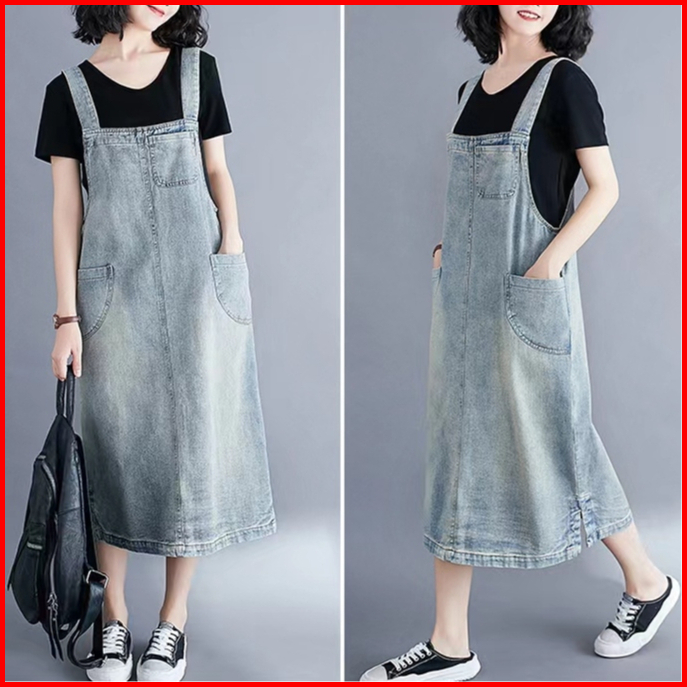 Boll.idoverall Jeans Wanita Overall Jeans Jumbo Overall Dress Celana Kodok Wanita S-3xl Biru Baju Kodok Wanita Korean St