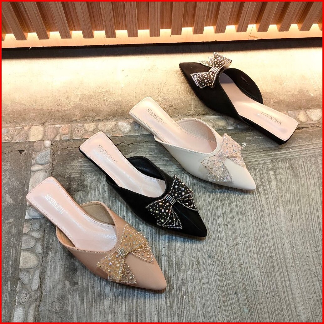 Simoncelli Sandal Flat Wanita Sandal Korea Sandal Wanita Sandal Kerja Sandal Pesta Wanita Sendal Hitam 7686-1