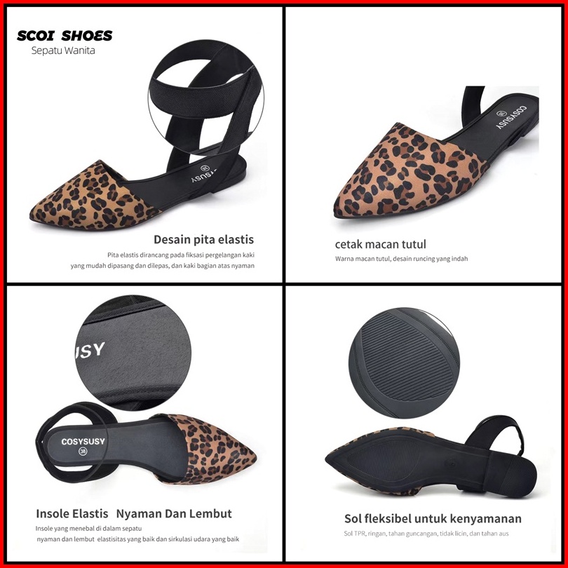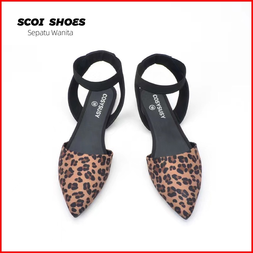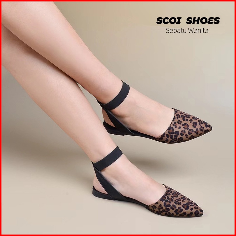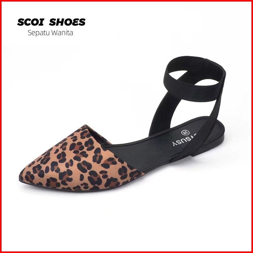 Scoi Sepatu Flatshoes Wanita Model Leopard Print Wanita Terbaru - Scoi