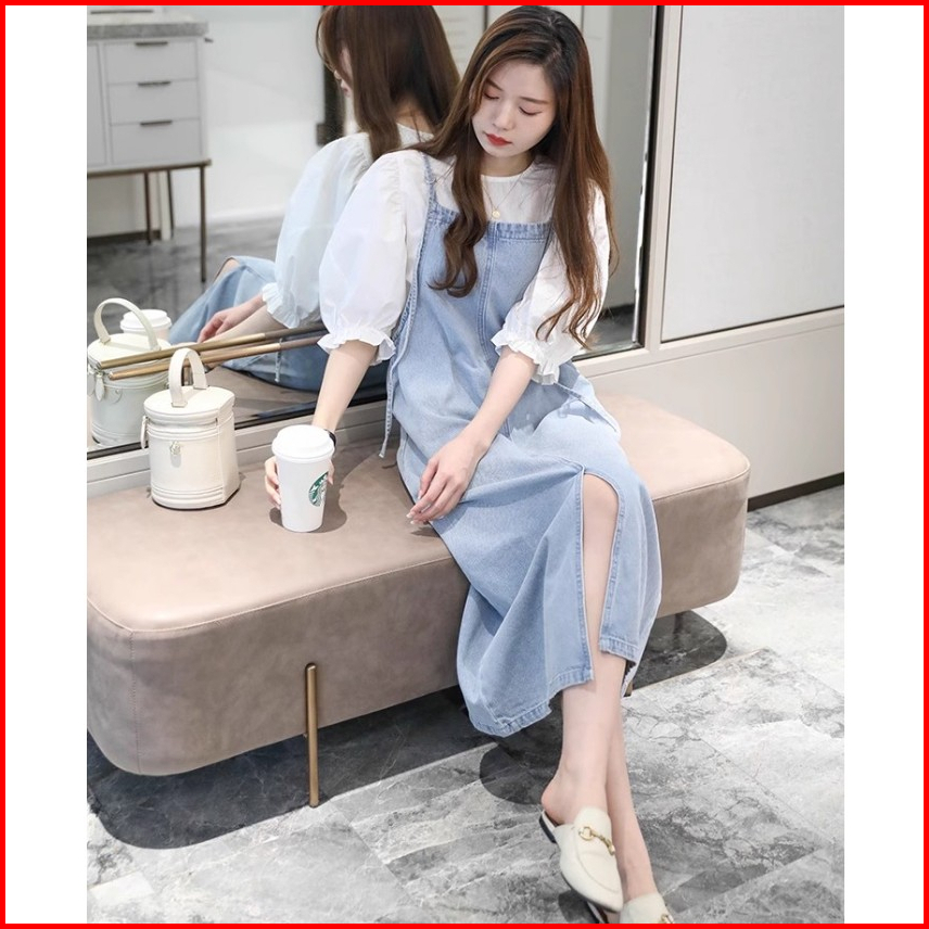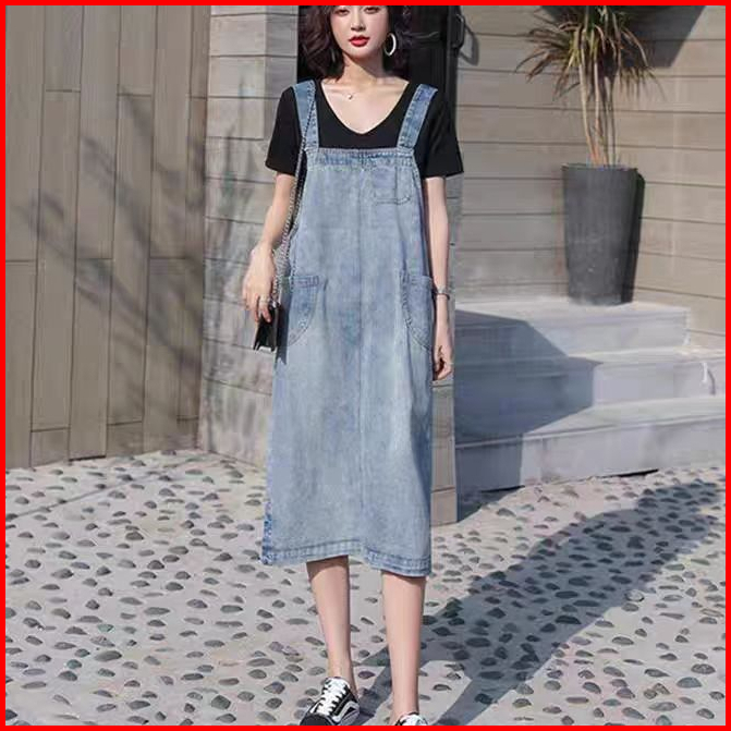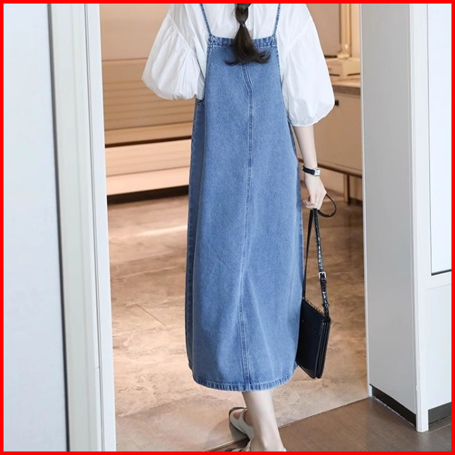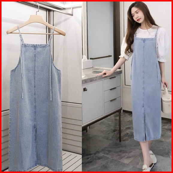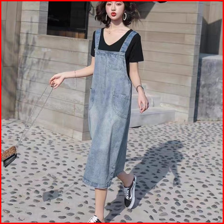 Boll.idbaju Kodok Wanita Rok Panjang Denim Overall Terbaru Korean Fashion Rok Jeans Kekinian Vintage Overall