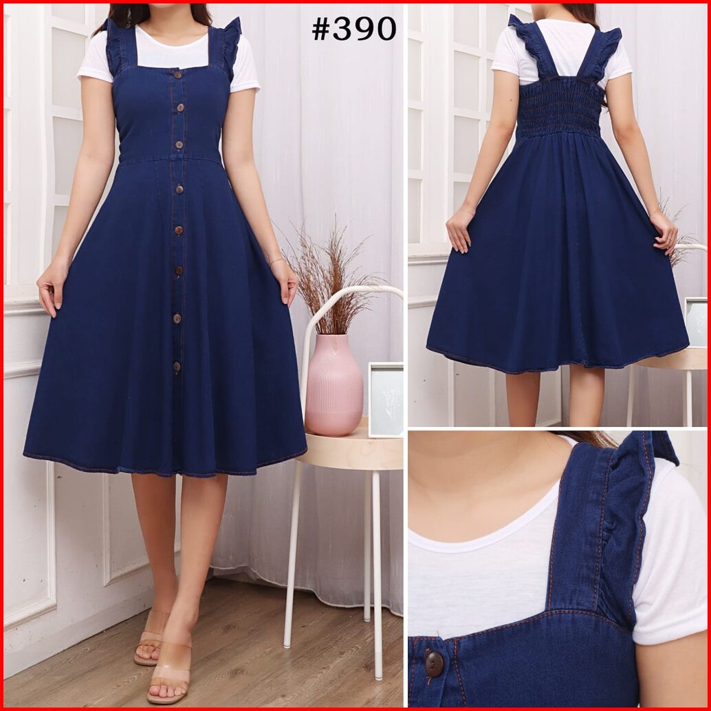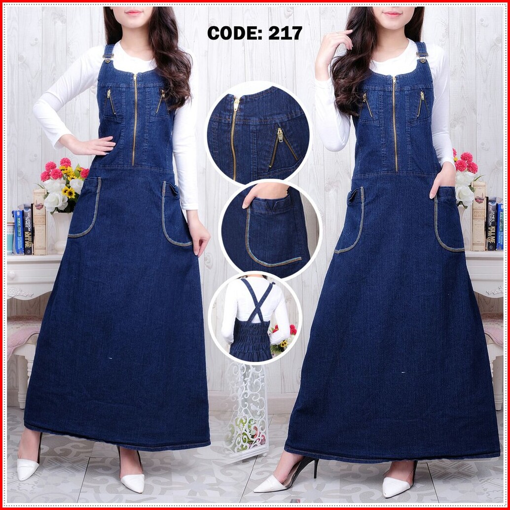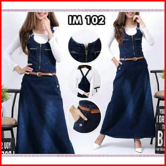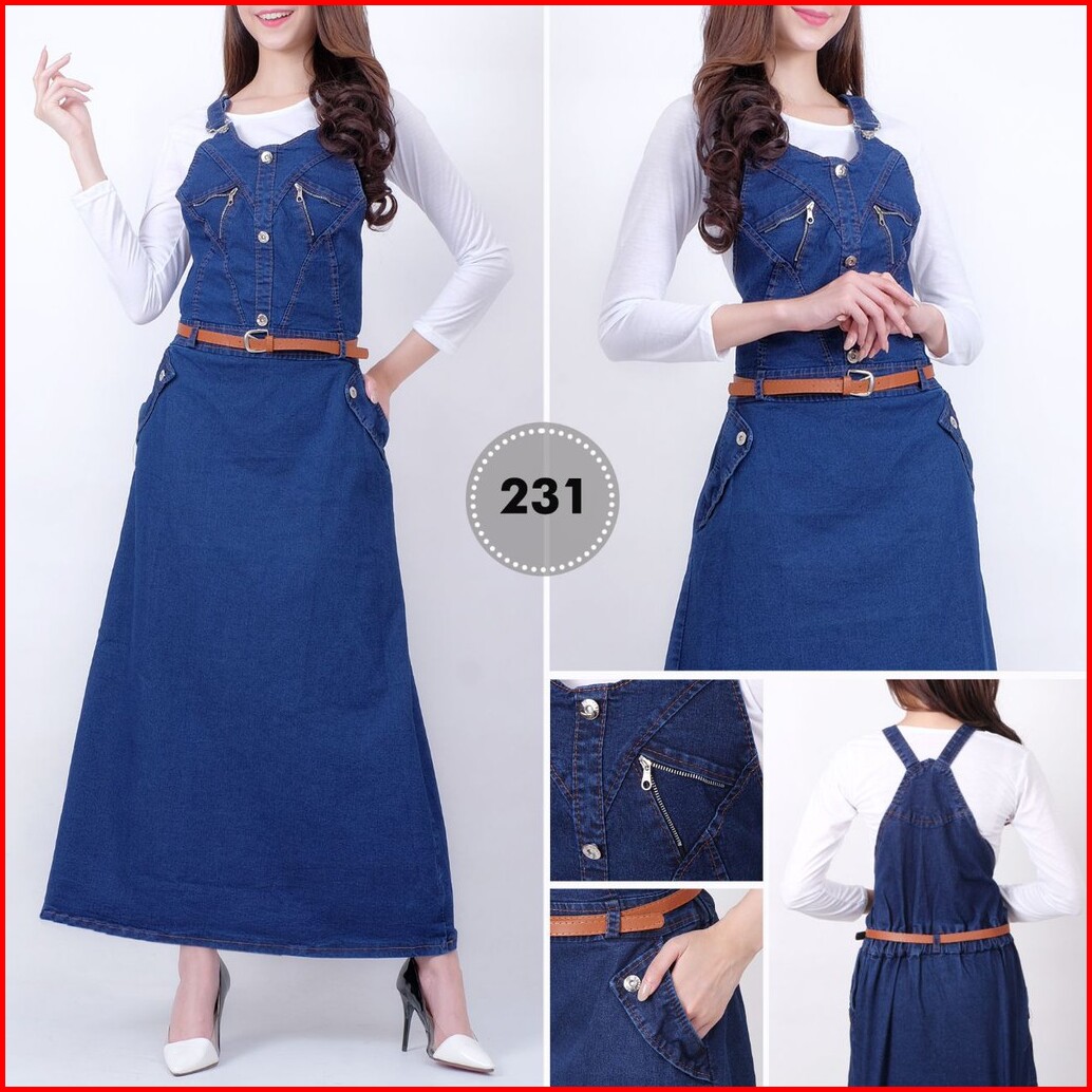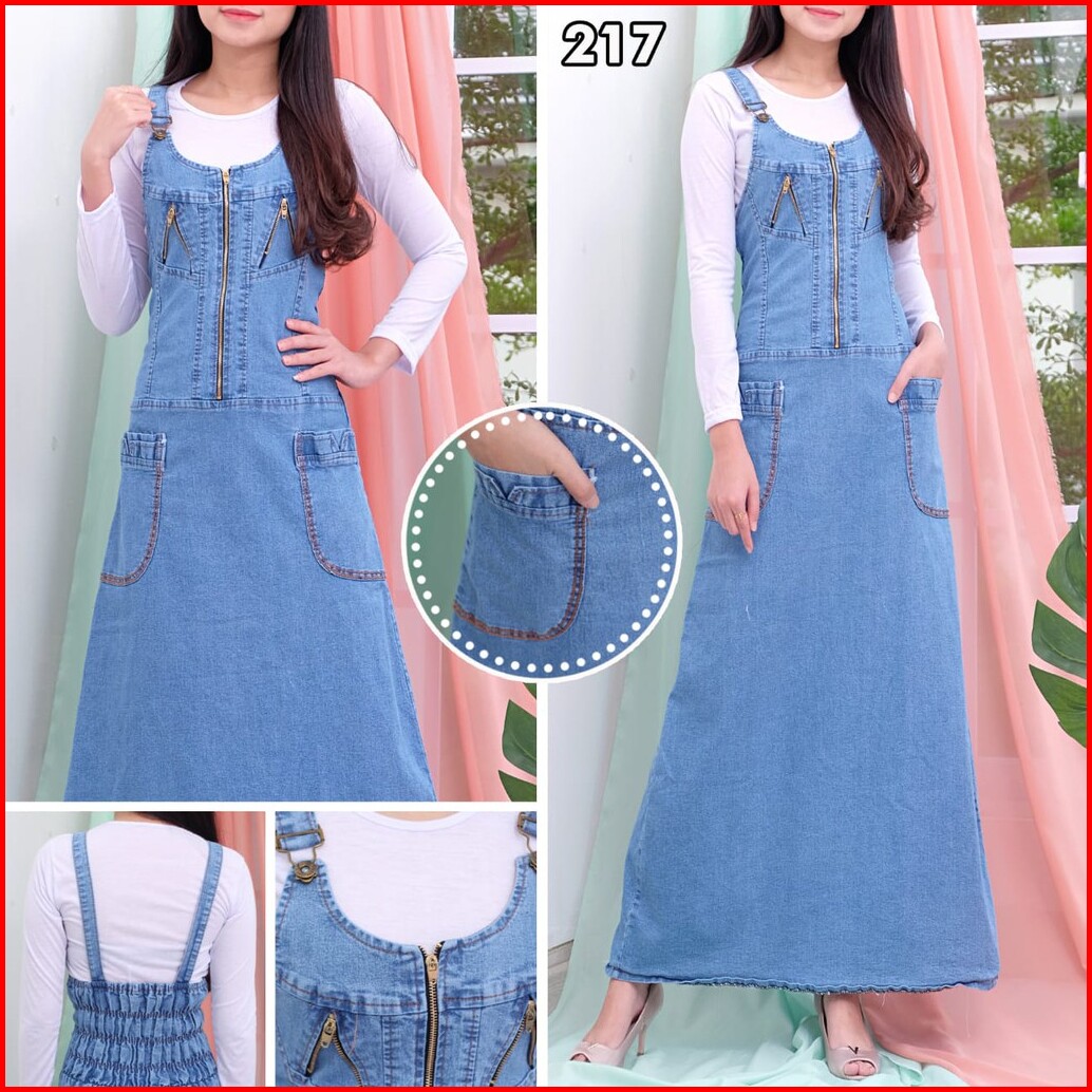Overall Rok Jeans Wanita Dewasa Overall Dress D3nim Panjang