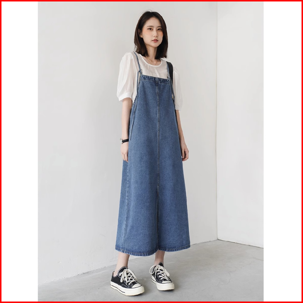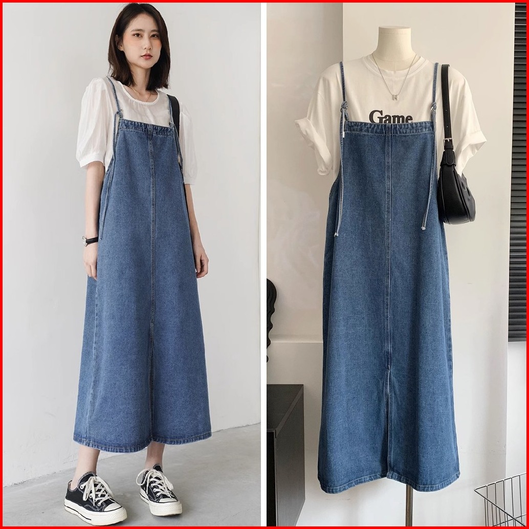 Overall Rok Jeans Jean Jins Denim Wanita Big Size 5xl Overall Rok Panjang Jumpsuit Korean Terbaru 2025