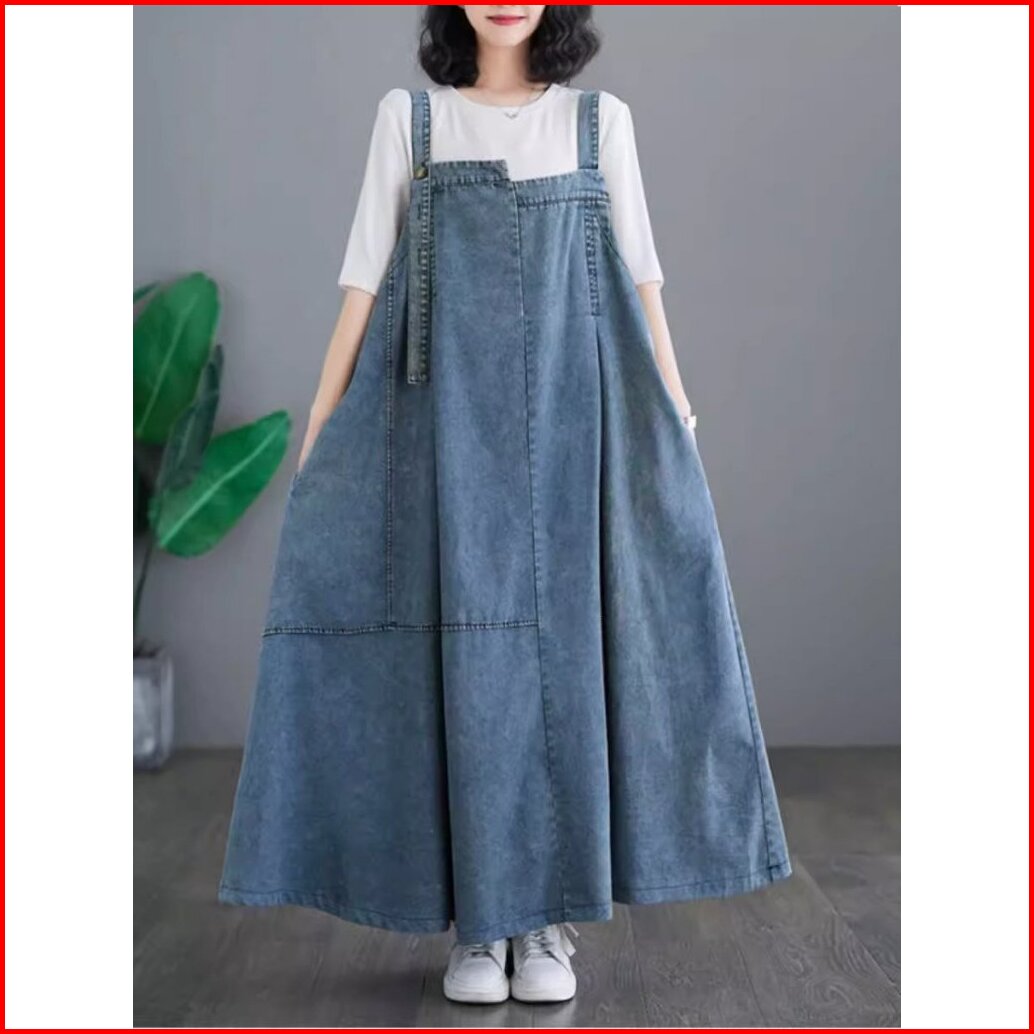 Lc1438 Premium Overall Jeans Rok Polos Fashion Retro Terbaru