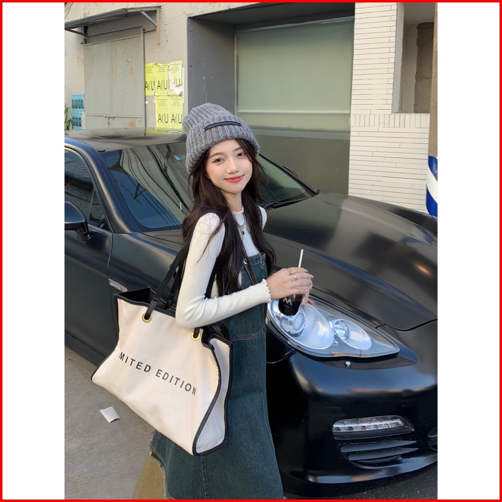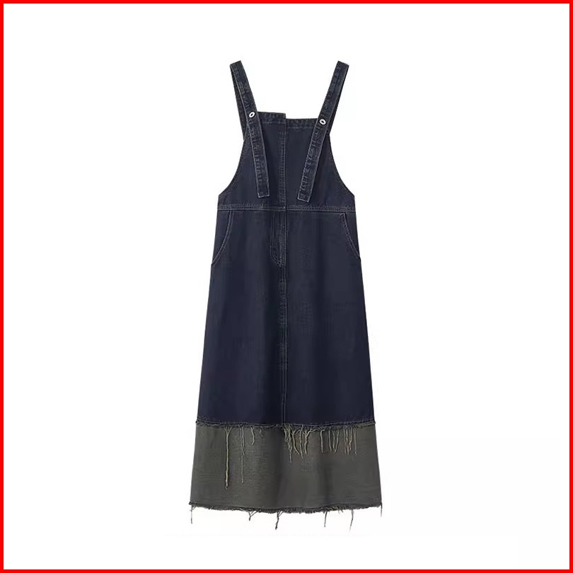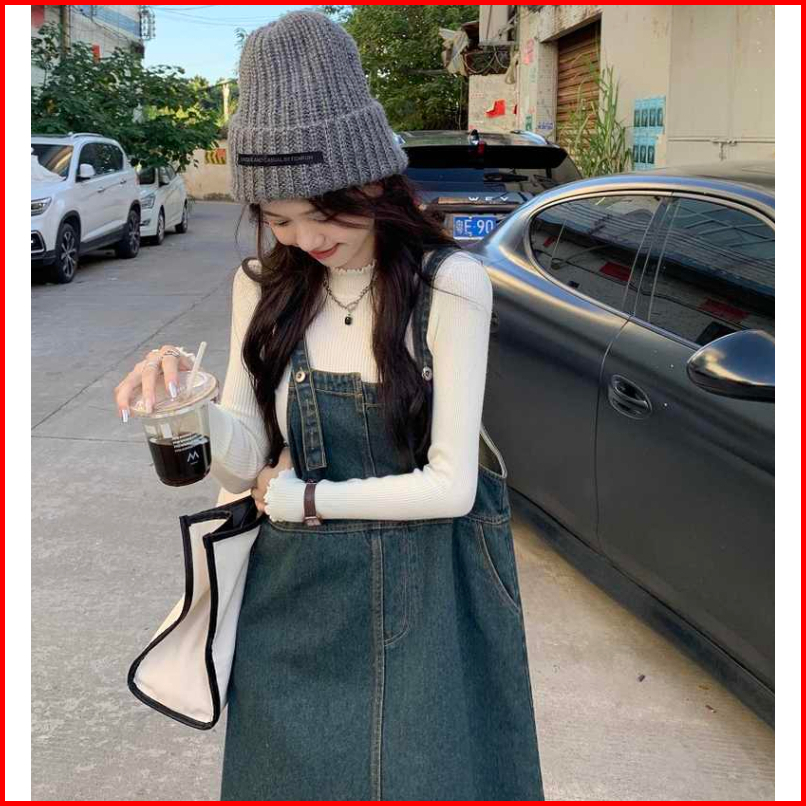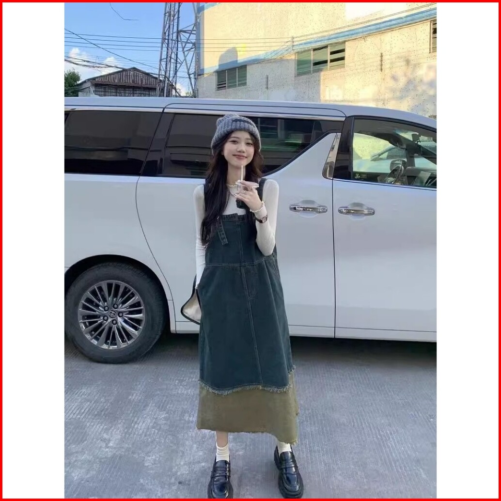 Overall Denim Rokpanjang Wanita Splicing Contrasting Colors Vintage Baggy Causual Street Style Rok Midi Premium