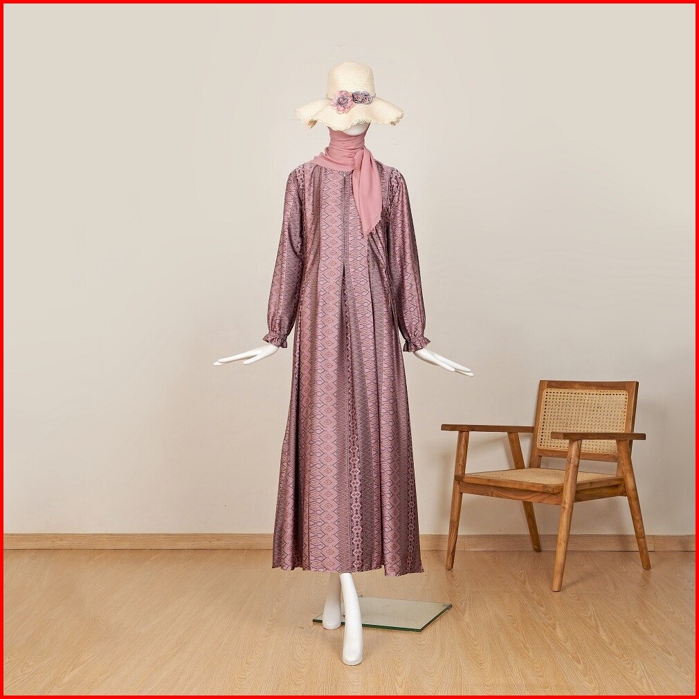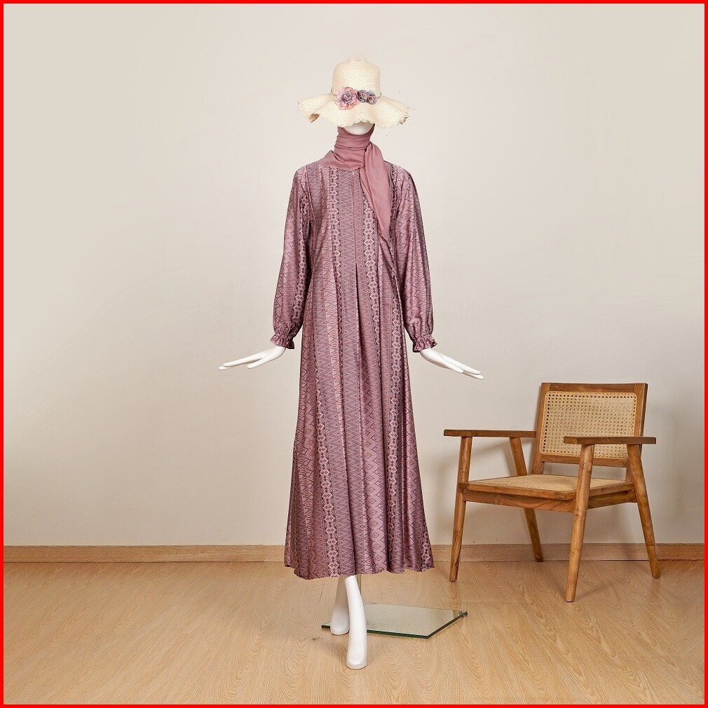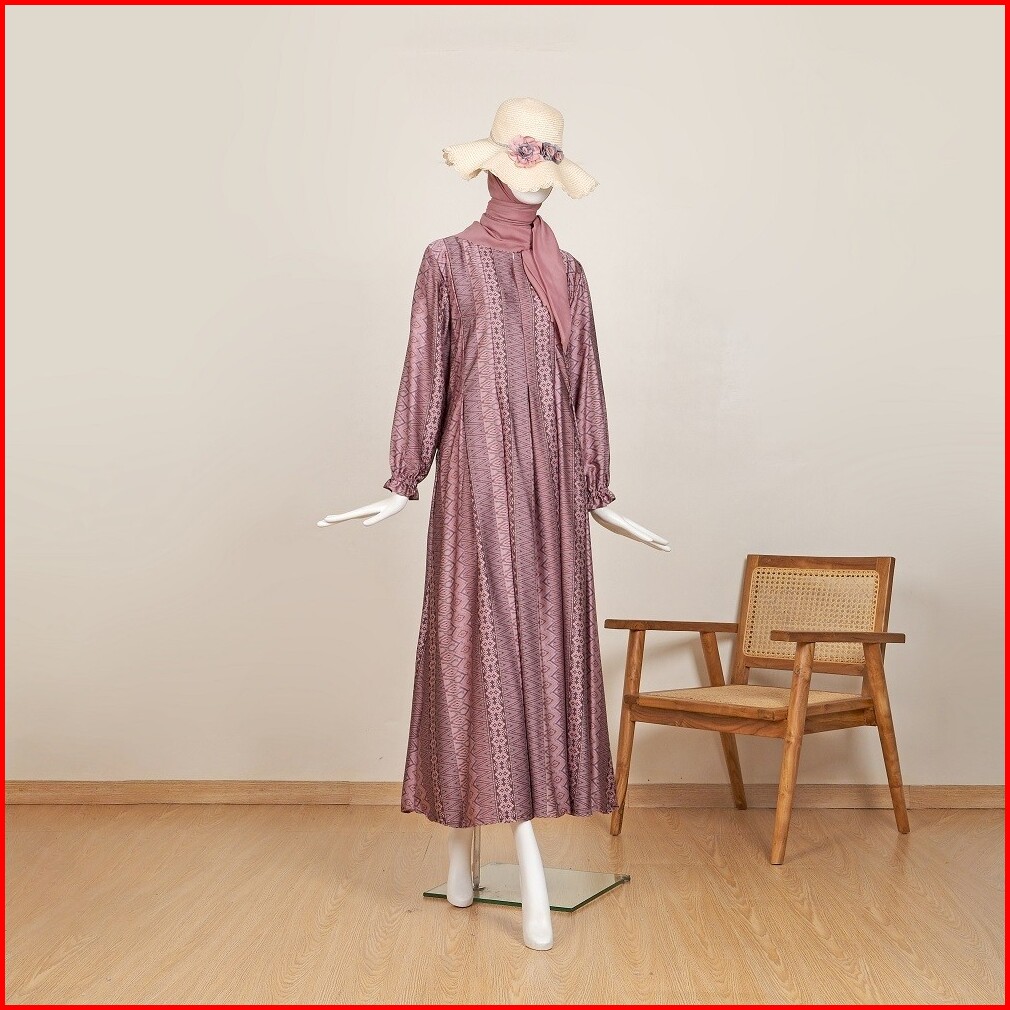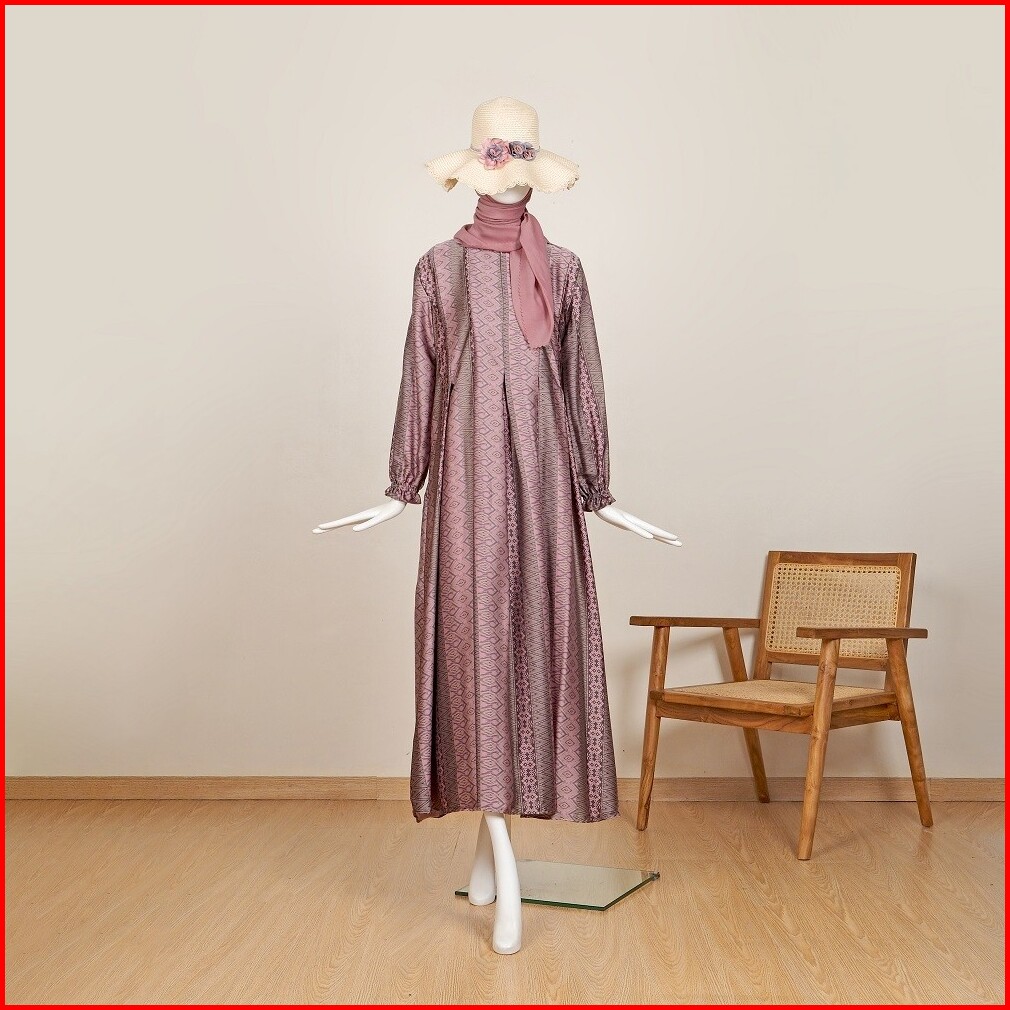 Le Khari Lameena Gamis Brown Silk Gamis Busui Size S - Xl