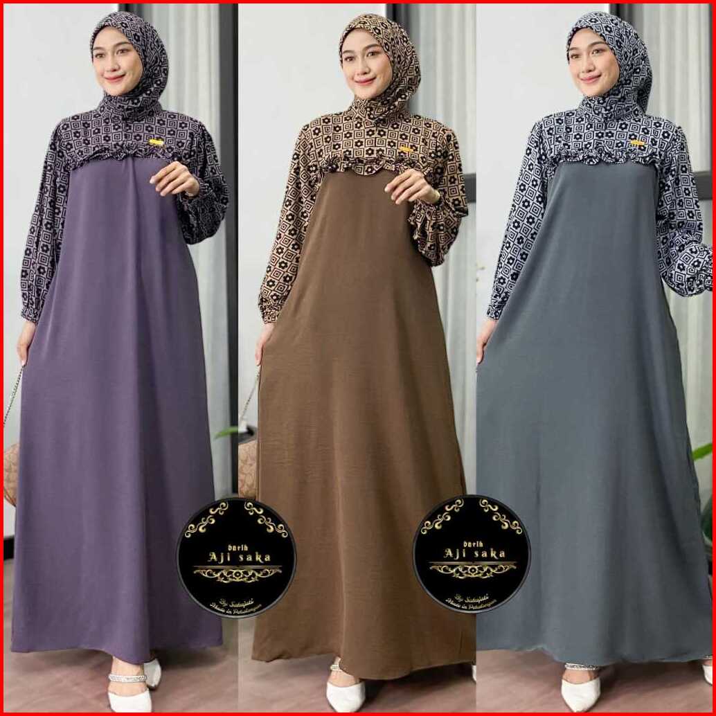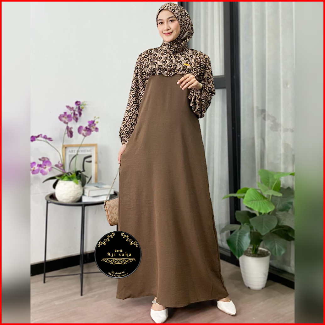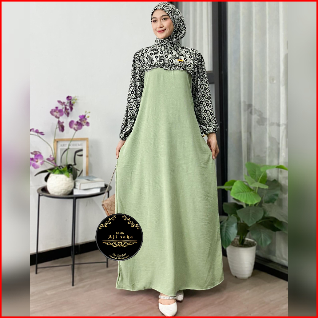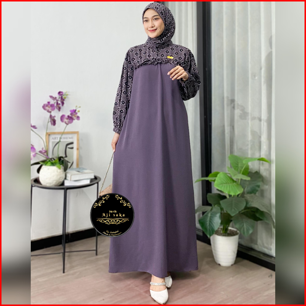 Gamis Tasya Free Hijab Segi Empat Cringkle Airflow Adem Halus Tebal Nyaman Mix Rayon Super Busui Dan Wudhu Friendly