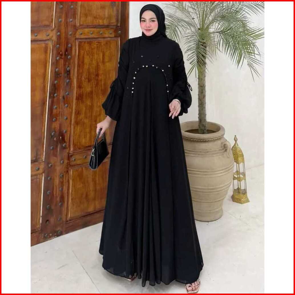 Elero Dress Gamis Model Terbaru Lebaran 2025 Gamis Ceruty Babydoll Mix Payet Gamis Burdgundy Mewah