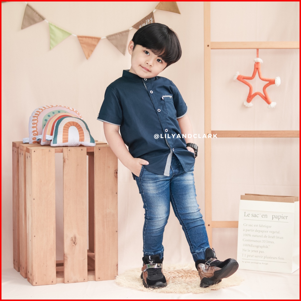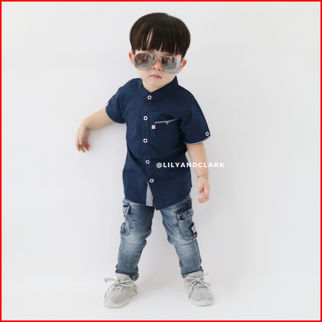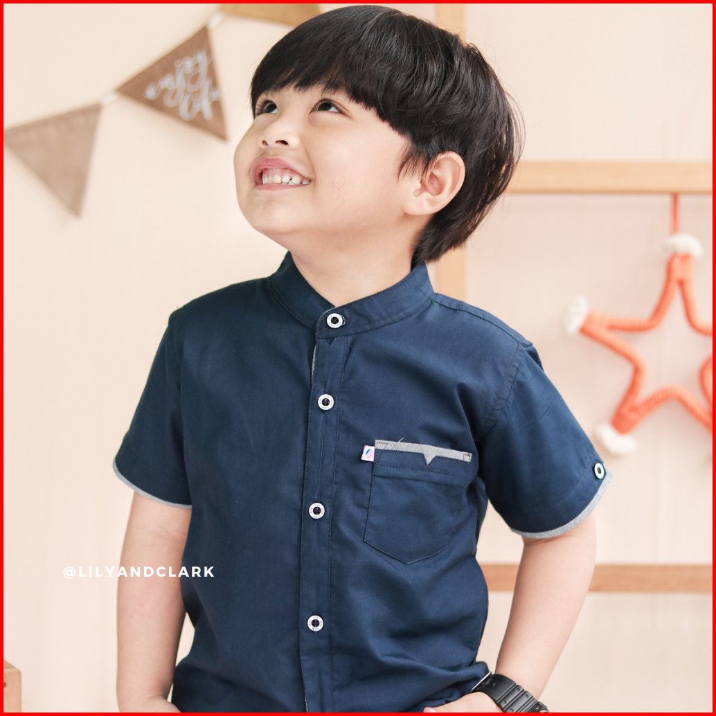 Lily And Clark Kemeja Lengan Pendek Anak Laki Laki Cowok Terbaru Warna Navy Kp01