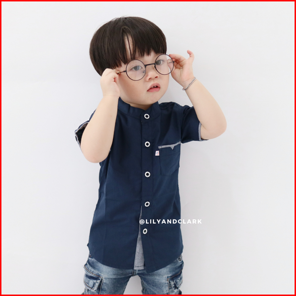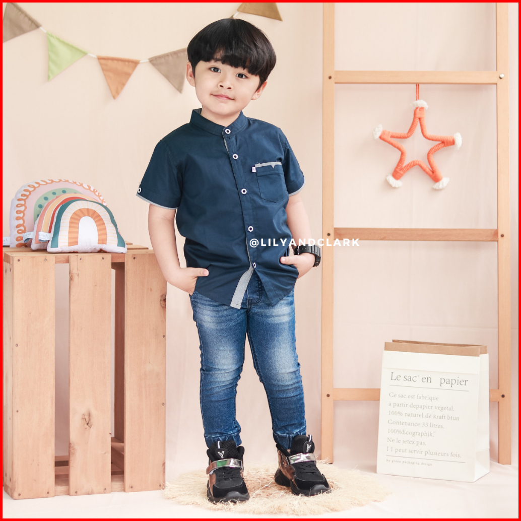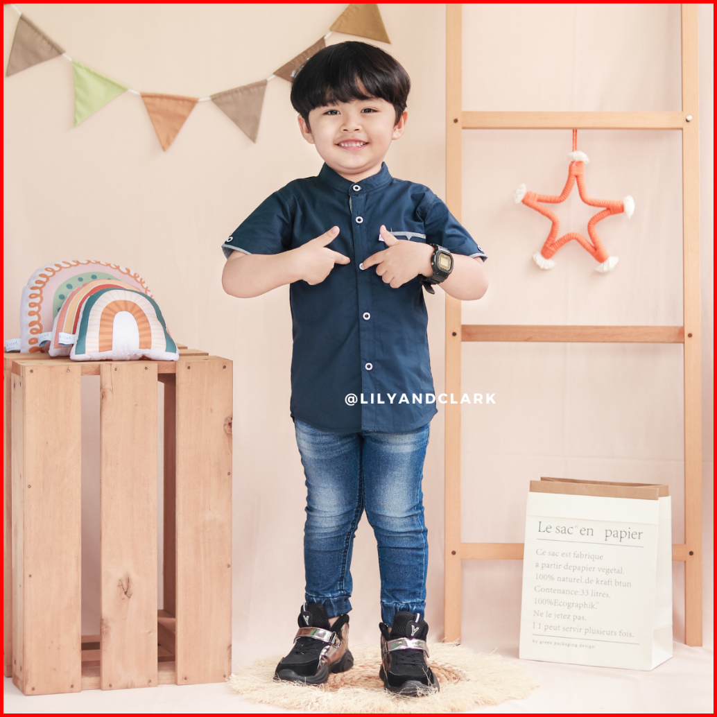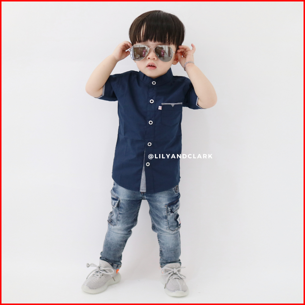 Lily And Clark Kemeja Lengan Pendek Anak Laki Laki Cowok Terbaru Warna Navy Kp01