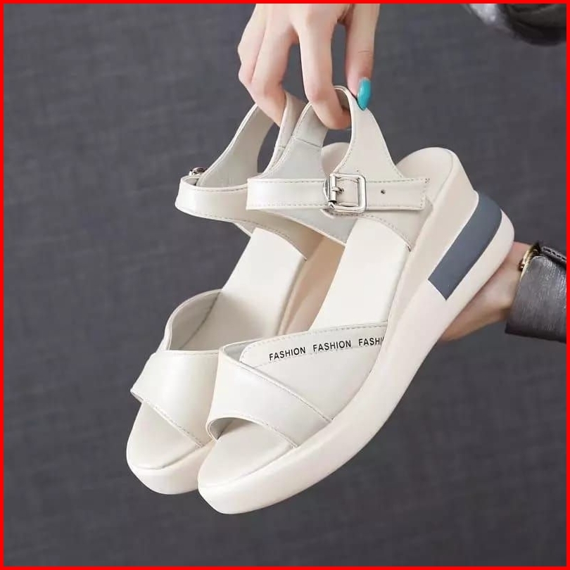 Sandal Platform Wanita Import Korea Style Sandal Platform Wanita Hak Tinggi Sandal Wedges Karet Cewek Casual Sandal Wani