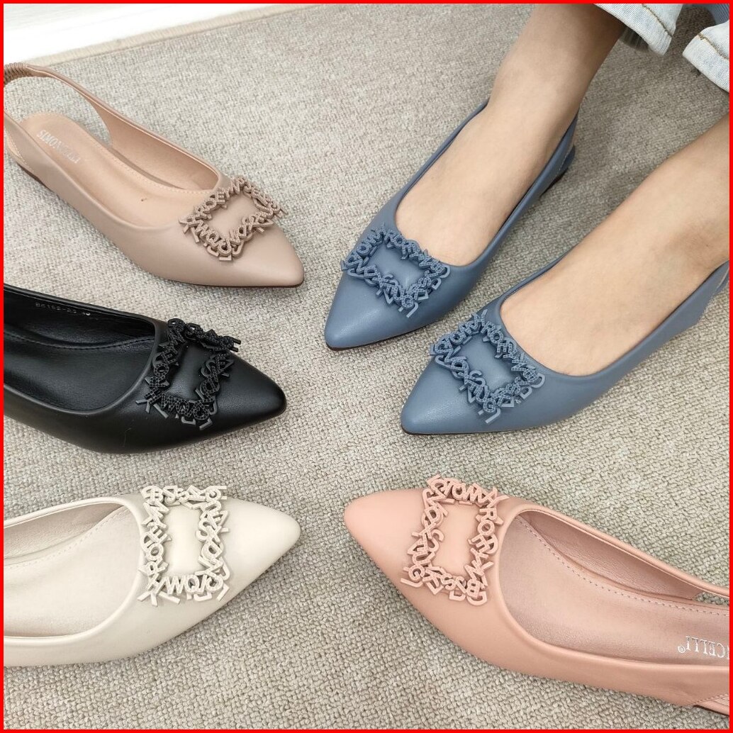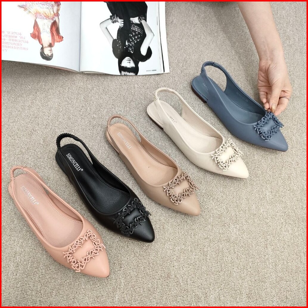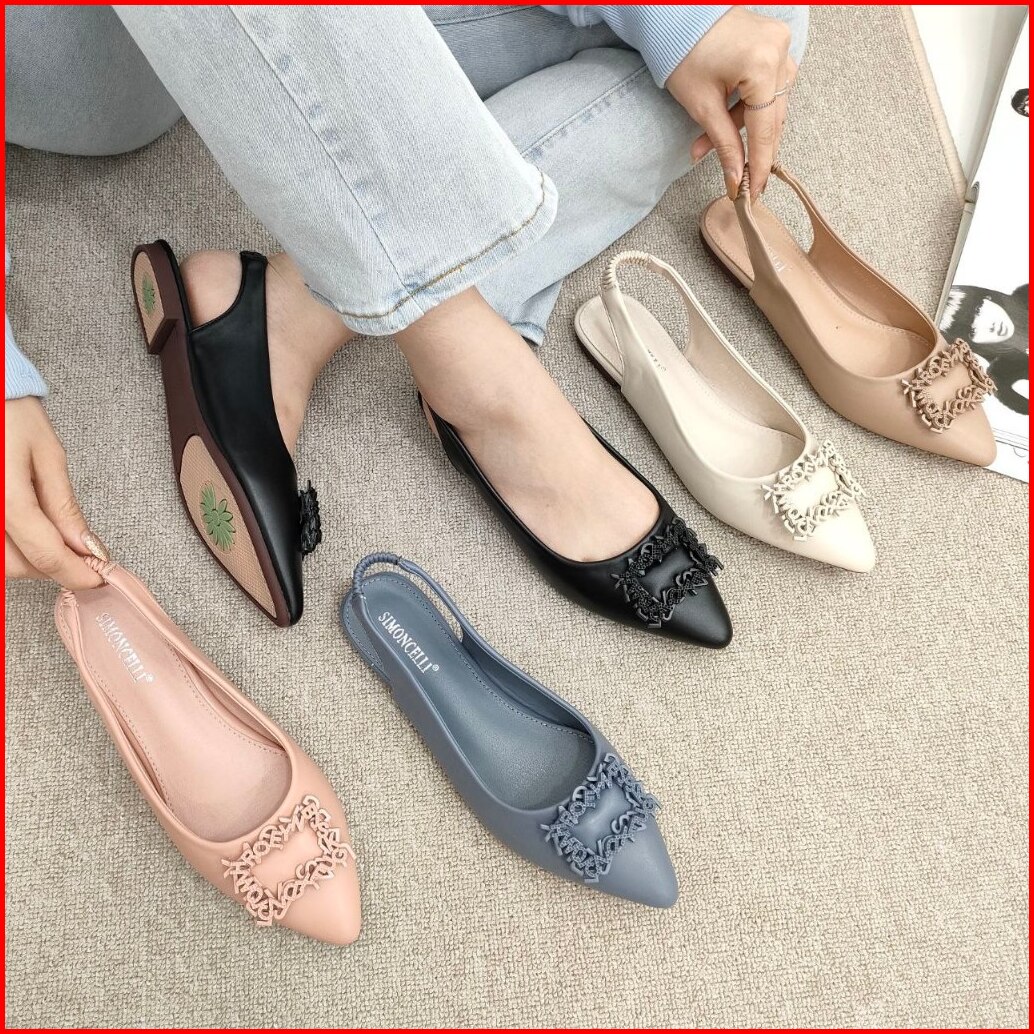Simoncelli Sandal Wanita Flat Tali Belakang Sandal Kerja Cewek Sandal Pesta Import B6162-23