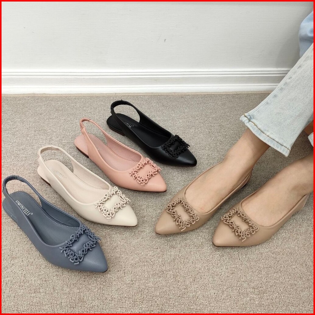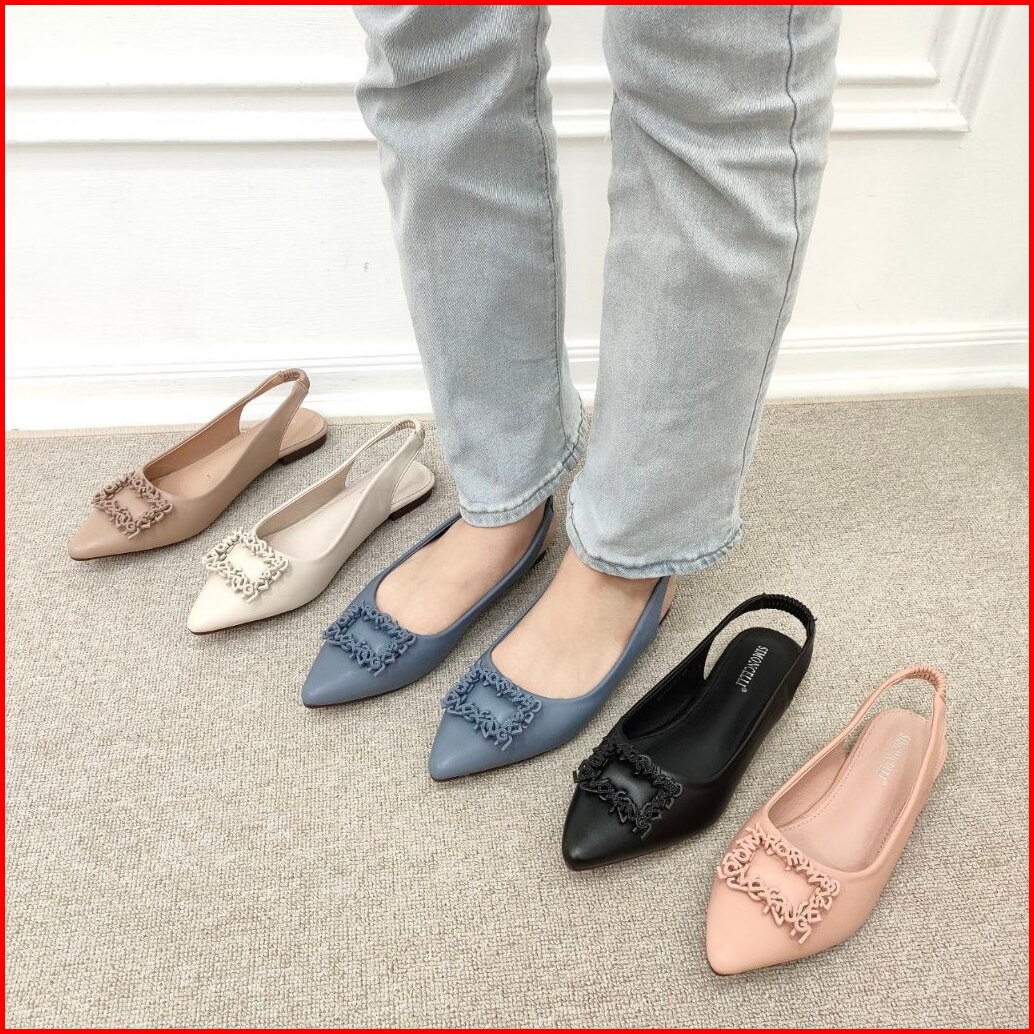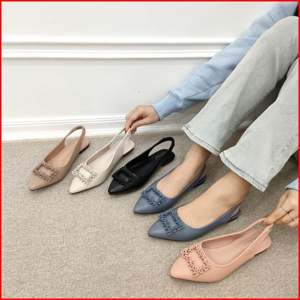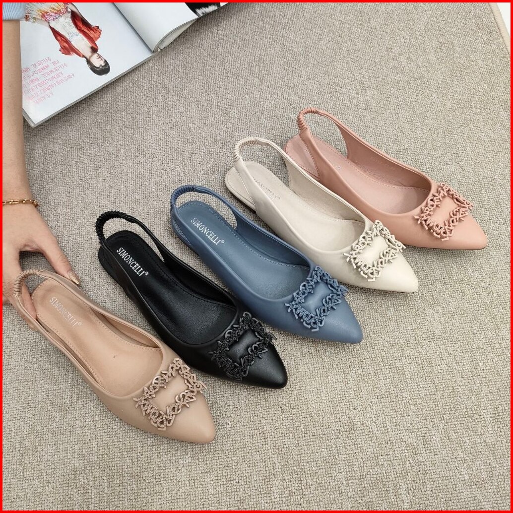 Simoncelli Sandal Wanita Flat Tali Belakang Sandal Kerja Cewek Sandal Pesta Import B6162-23