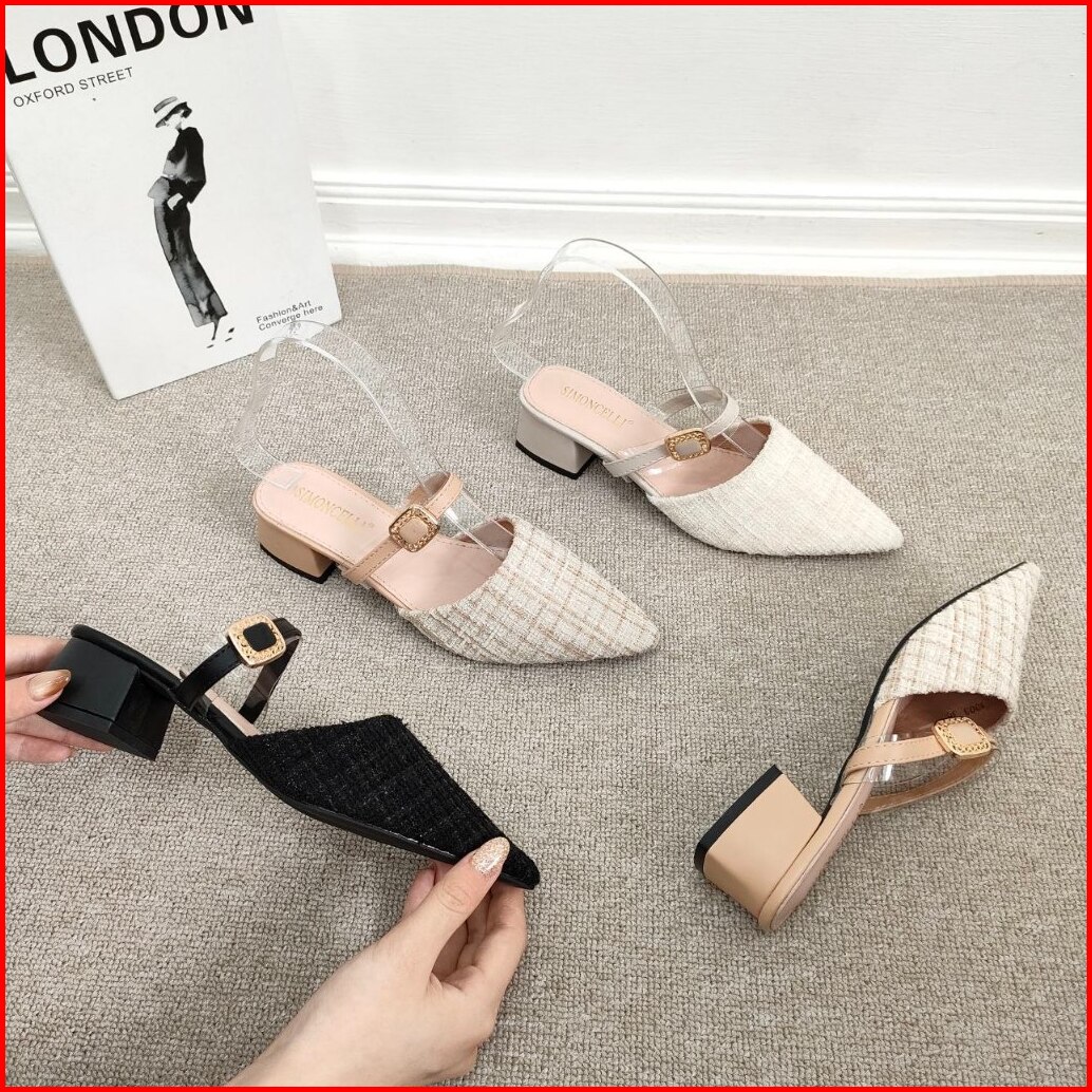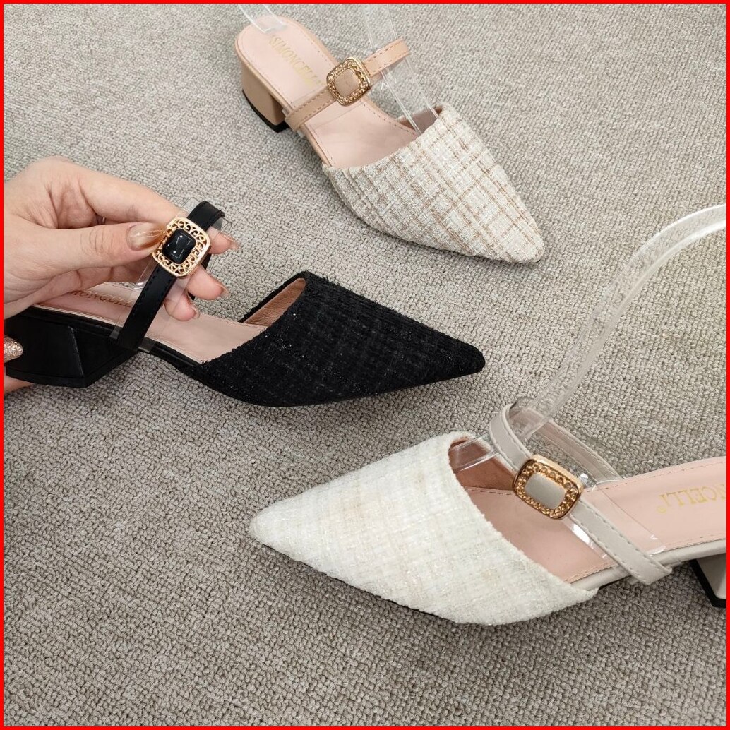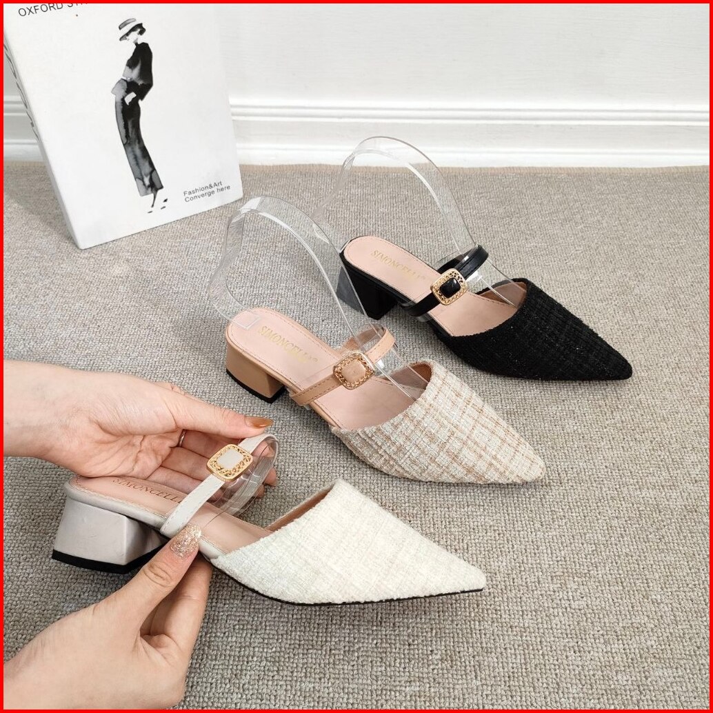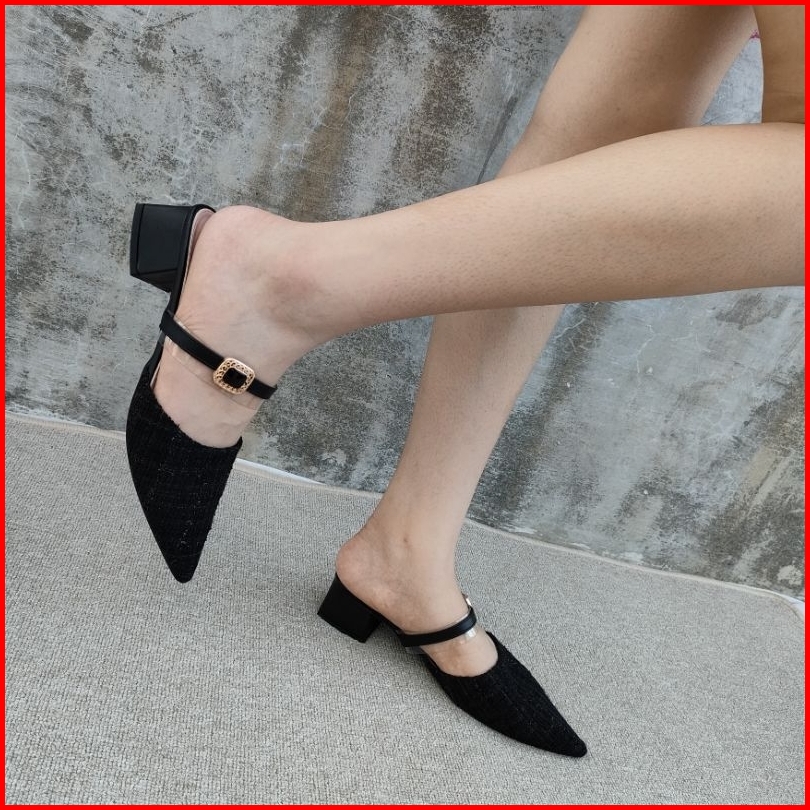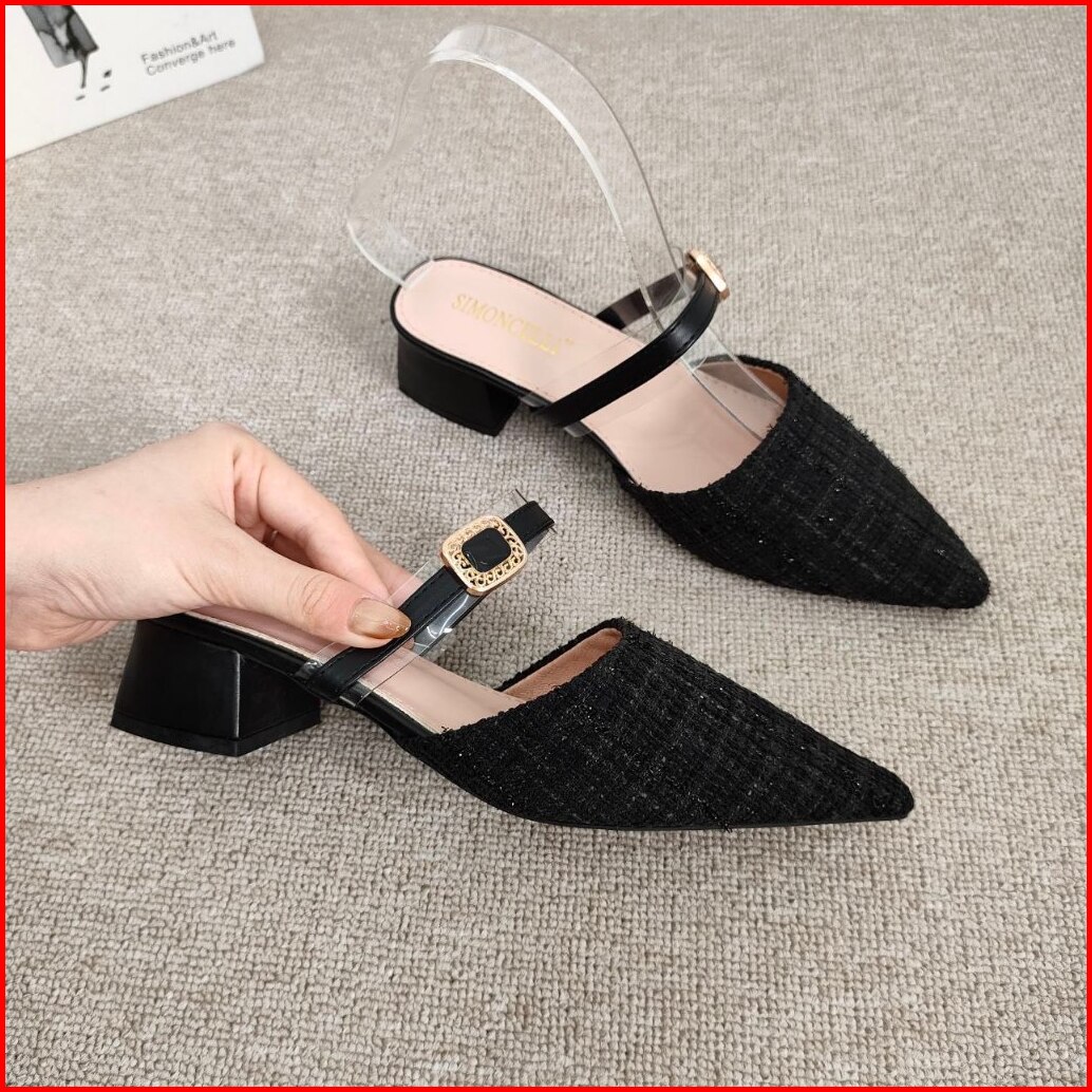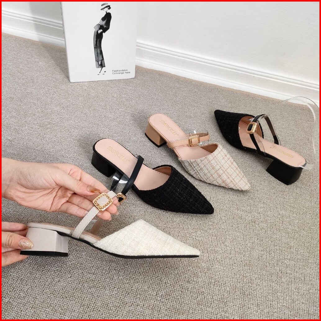 Simoncelli Sandal Tumit Tahu 2 Cm Wanita Sandal Kerja Sendal Kondangan Sandal Mules Import 1003
