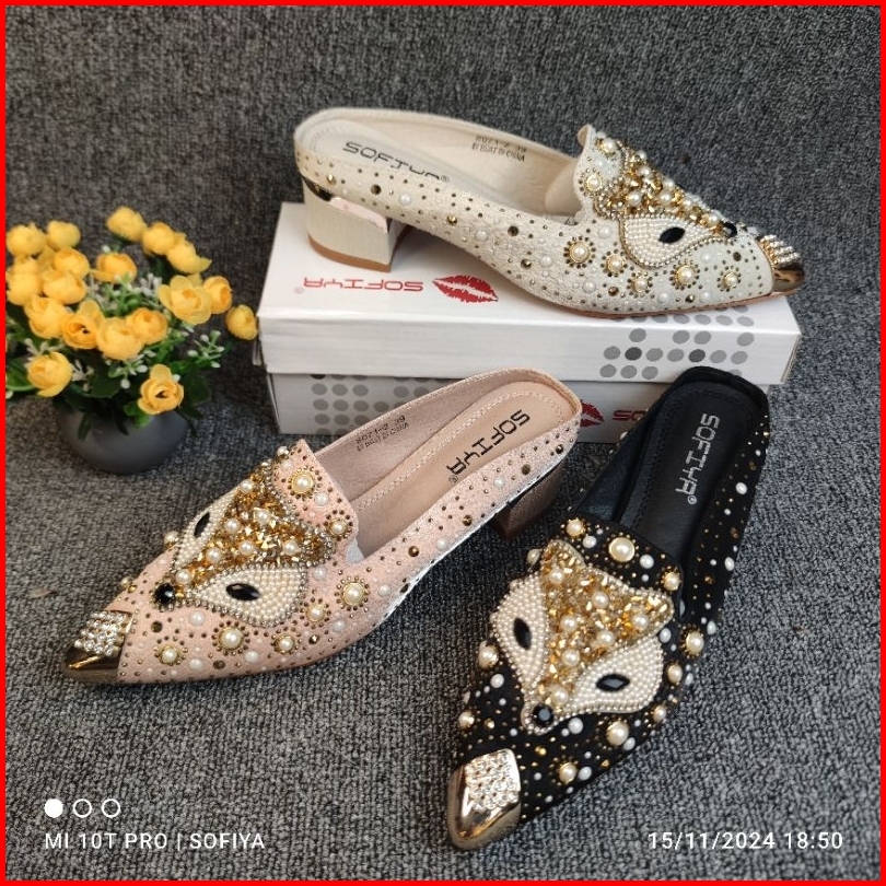 Sofiya Ori 8071 2 Sandal Fasion Wanita Import Sandal Bustong Bertabur Mutiara Sendal Slop In Fashion Hak Tahu 5cm