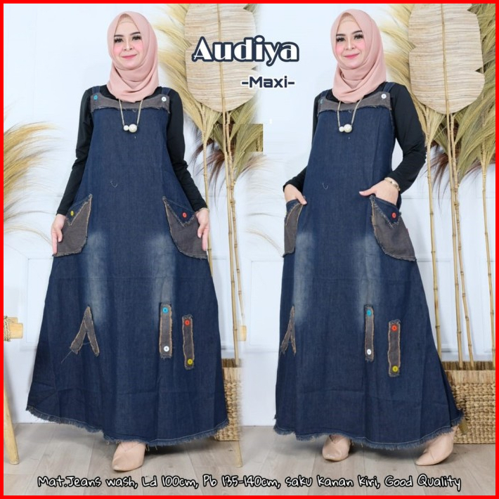 Hima Overall Jeans Audiya Maxi Jeans Overall Rok Wanita Jeans