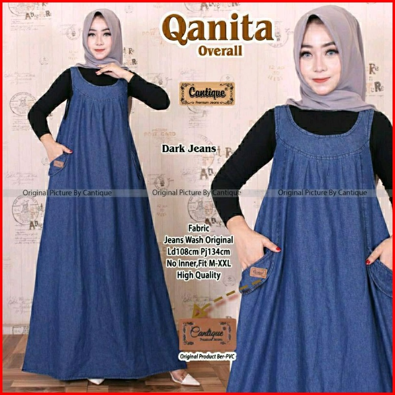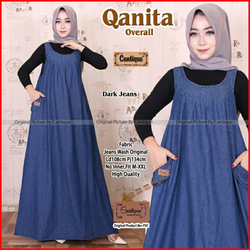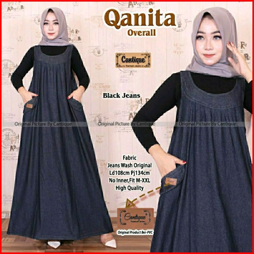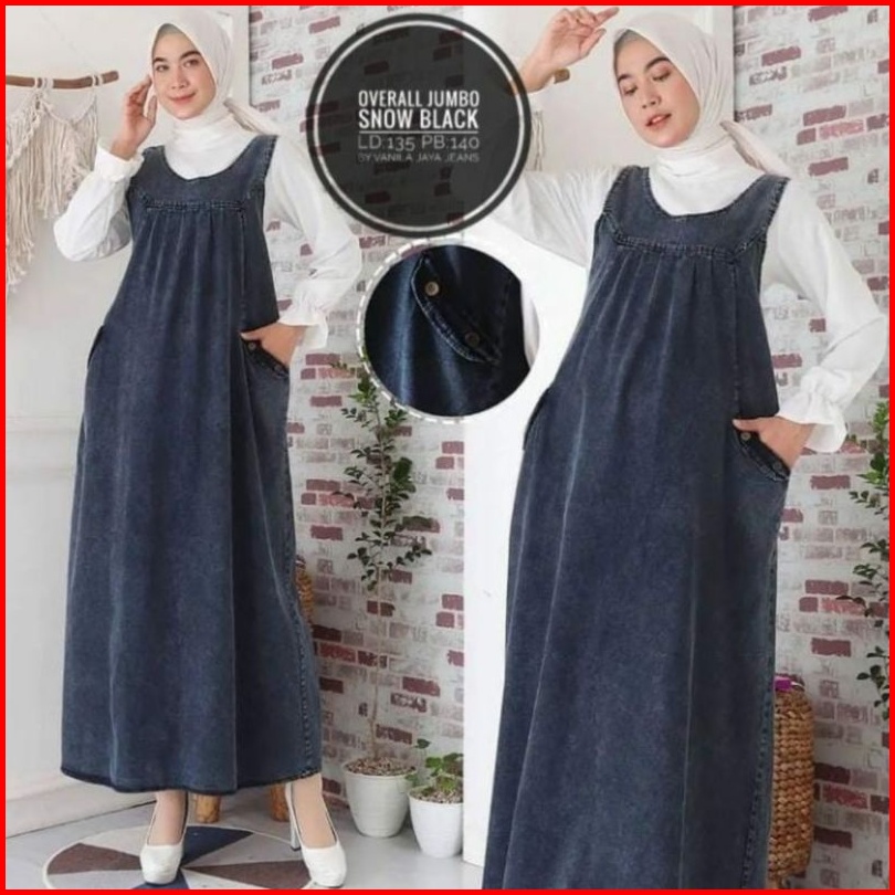 Qanita Overall-overal Bumil-overall Jeanswash Halus-biru Hitam-all Size Bb 50-100kg-qanita Overall Jeans